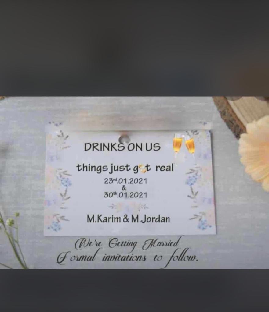 Ku wa 24 Ugushyingo 2020, ni bwo hasohotse ‘invitation’ z’ubukwe bwa Mushambokazi Jordan uri mu bakobwa 20 bahataniye ikamba rya Miss Rwanda 2018 n’umukunzi we bamaranye igihe mu buryohe bw’urukundo Mbonyumuvunyi Karim wafashe irembo akamwinjiza mu idini ya Islam