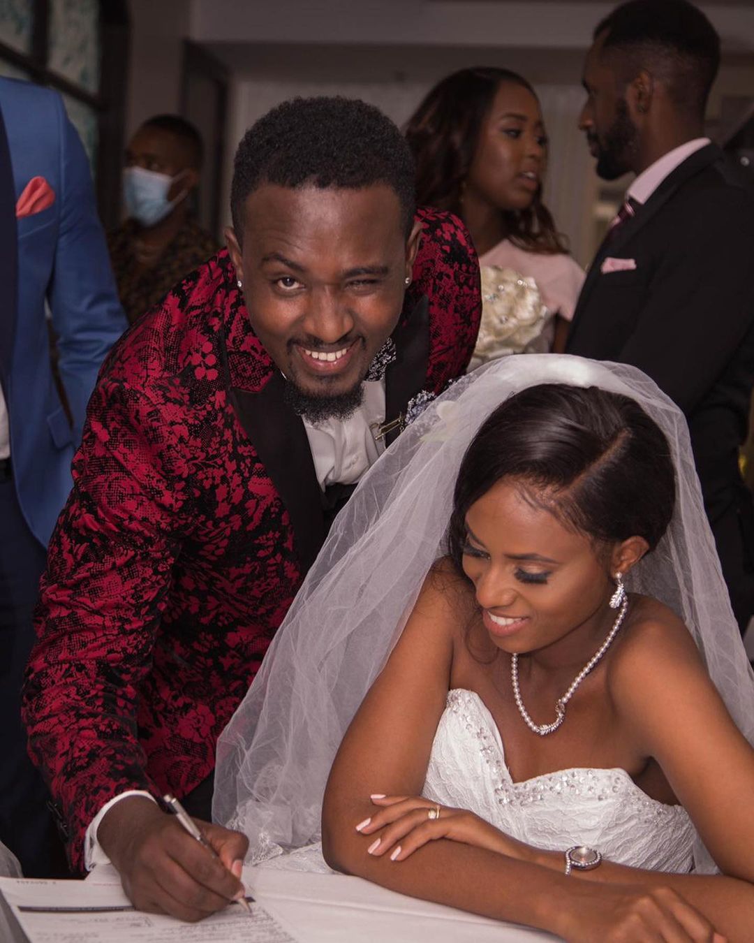 Alpha Rwirangira n'umugore we Umuziranenge Liliane bakoze ubukwe tariki 22 Kanama 2020, nyuma y'amezi macye bibaruka imfura yabo. Mu mafoto y’ubukwe bashyize hanze yagarakazaga ko Liliane Umuziranenge akuriwe ndetse aza no guhita yibaruka. Mu magambo yanyujije ku rubuga rwa Instagram yagize ati (…):