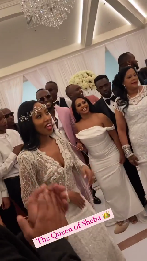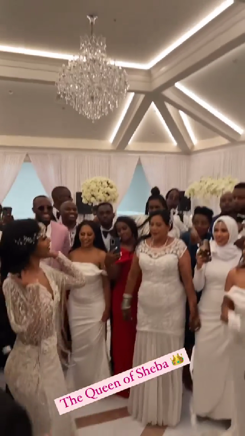 Ku munsi w'ubukwe bw'aba bombi bazengurutswe n'imiryango n'inshuti mu ruziga babakurikiye uko baririmba banabyina, Mimi yagaragaye afasha umugabo we Meddy kuririmba indirimbo bakoranye The Queen Of Sheba. Yumvikanamo amagambo agira ati "I feel you bebe isecyere mwana nkunda yego sha."