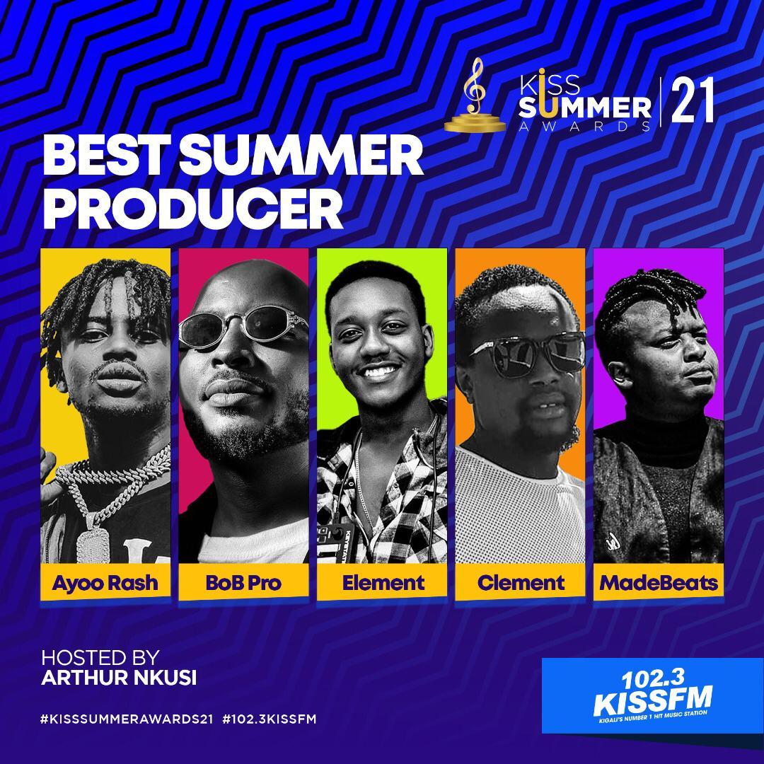 Mu cyiciro cya Producer w’impeshyi (Best Summer Producer) harimo Bob Pro wa The Sound Studio, Producer Ishimwe Karake Clement wa Kina Music, Ayoo Rash wo muri The Mane, Madebeats na Element wo muri Country Records.