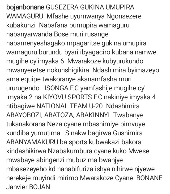 Abinyujije ku rukuta rwa Instagram, Bonane Janvier wari Umukinnyi wa Kiyovu Sports, yasezeye ku mupira w'amaguru burundu. Yagize ati" Mfashe uyu mwanya ngo nsezere ku bakunzi n'abafana b'umupira w'amaguru n'abanyarwanda bose muri rusange, nabamenyeshaga ko mpagaritse gukina umupira w'amaguru burundu. Byari iby’agaciro kubana namwe imyaka 6, mwarakoze kubw’urukundo mwanyeretse."