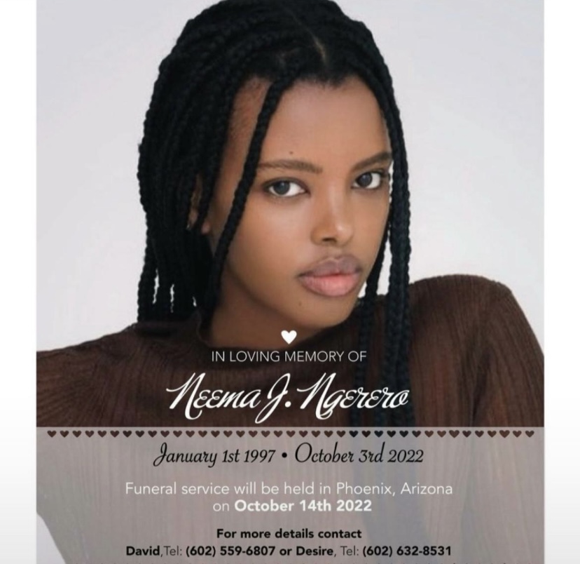 Umuhango wo gushyingura Neema bizakorerwa muri Leza Zunze Ubumwe za Amerika, Phoenix, Arizona tariki 14 Ukwakira 2022.
