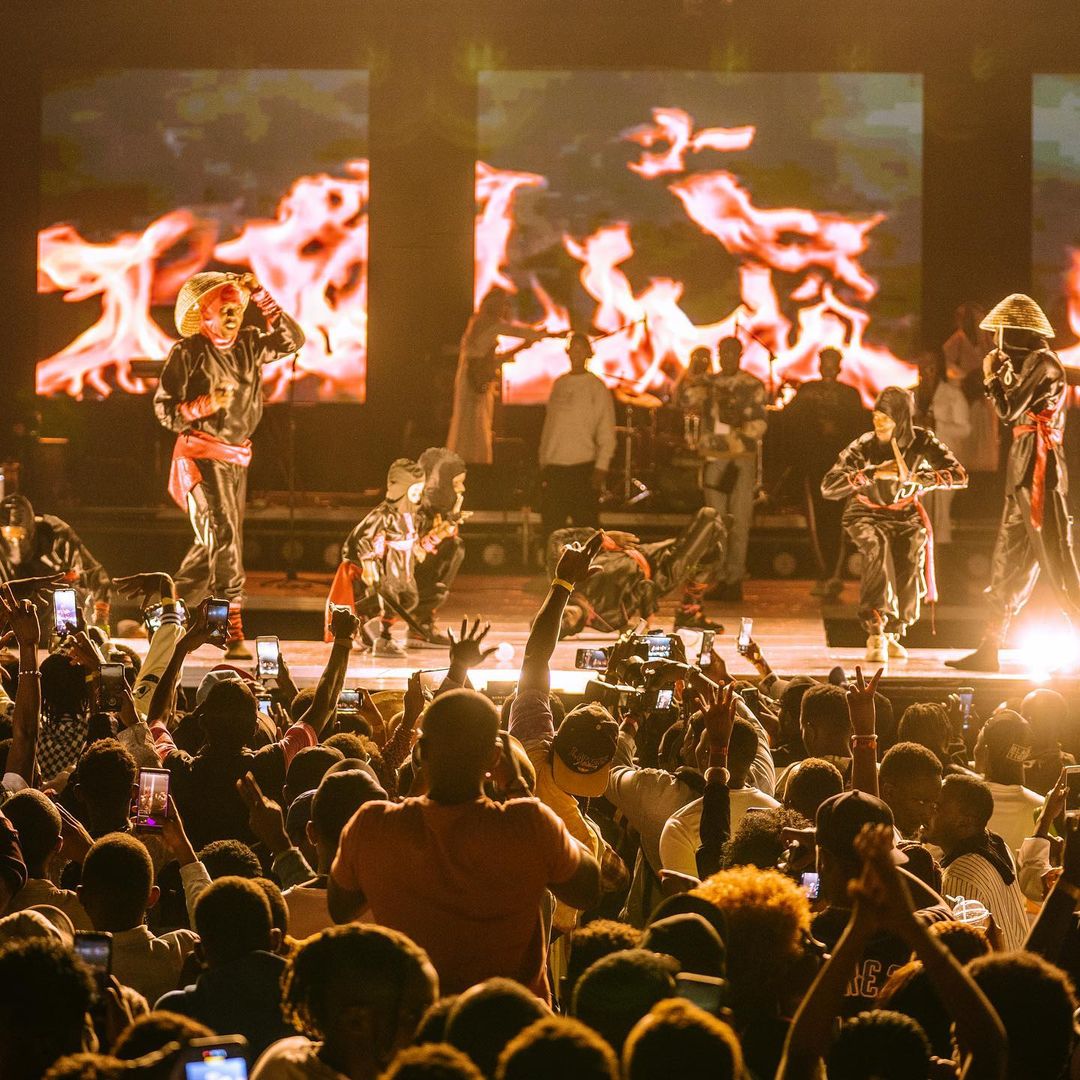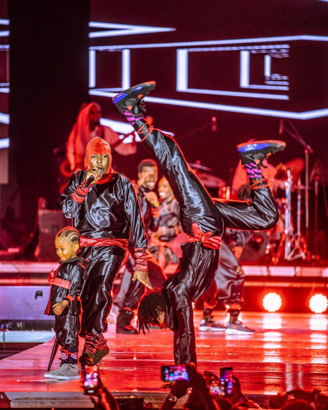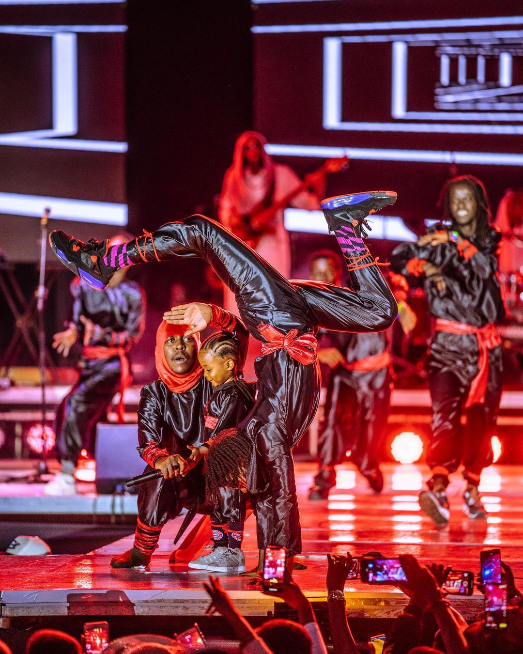 Yongeye kandi kuzana n’umuhungu we bari bambaye kimwe. Ubwo yageraga ku ndirimbo yise ‘Bahabe’ abantu babyinnye muri za mbyino zimeneyerewe za Trap. Nk'uko byari byitezwe kandi indirimbo Bushali yise 'Mukwaha' yafashije cyane abitabiriye.