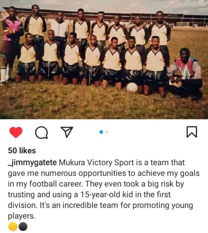 Jimmy Gatete abinyujije ku rukuta rwa Instagram yafashe umwanya ashimira Mukura Victory Sports, ayivuga imyato yibutsa abantu uburyo iyi kipe yamugize uwo ariwe ubu. Yagize ati "Mukura Victory Sports yampaye amahirwe menshi kugira ngo ngere ku ntego zanjye, mu rugendo rw'umupira w'amaguru. Ni ikipe itaratinye gukinisha umwana w''imyaka 15, mu cyiciro cya shampiyona mu Rwanda. Mukura ni ikipe itangaje mu kuzamura abana bakiri bato."