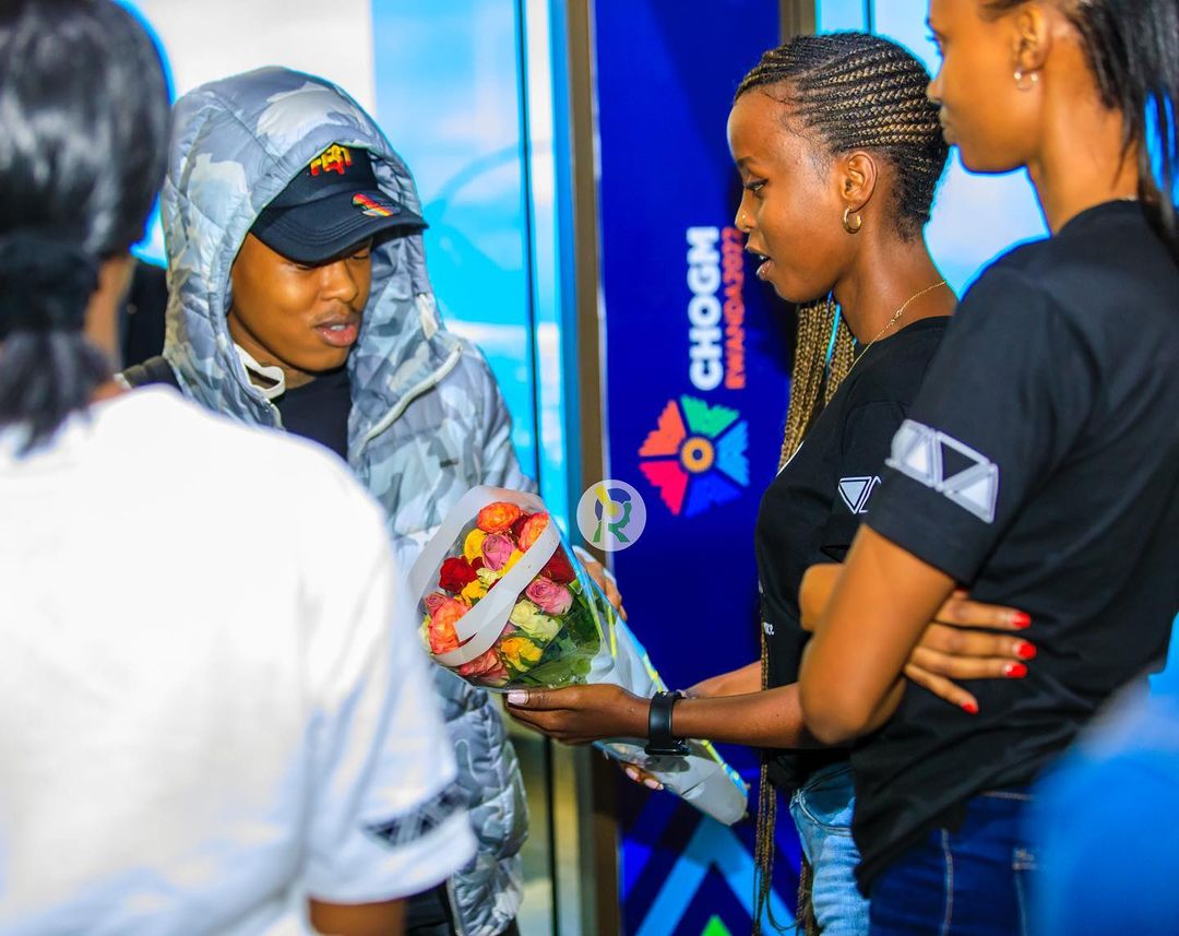 Uyu muhanzi usanzwe ashyigikira ibikorwa bitandukanye, yashimye uburyo yakiriwe ageze murwamwibarutse, ashima Kigali Protocal yamushyikirije indabo anizeza igitaramo cyiza ari nabyo yakoze.