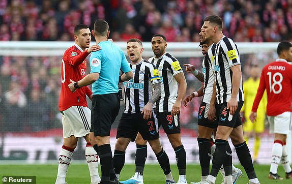 Ku munota wa 25 Trippier wa Newcastle United yahinduye umupira imbere y'izamu, bituma Schär Lisandro Martnez bagonganya imitwe abaganga baratabara.