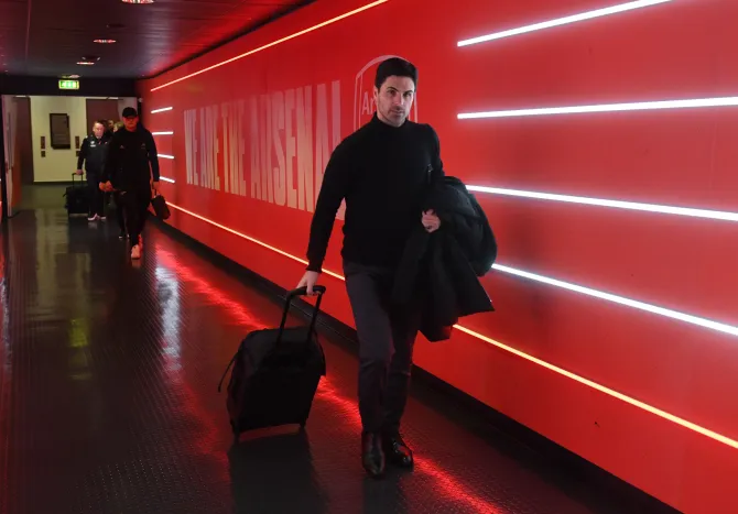 Mikel Arteta agera kuri Emirates yambaye imyenda y’amahirwe