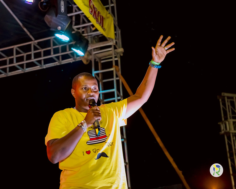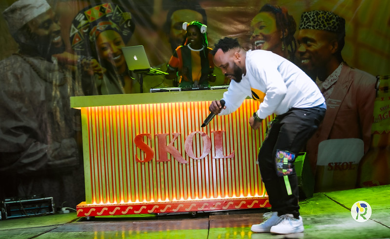 MC Tino ashushya abari bitabiriye iki gitaramo cya Nyega Nyega na Skol Lager