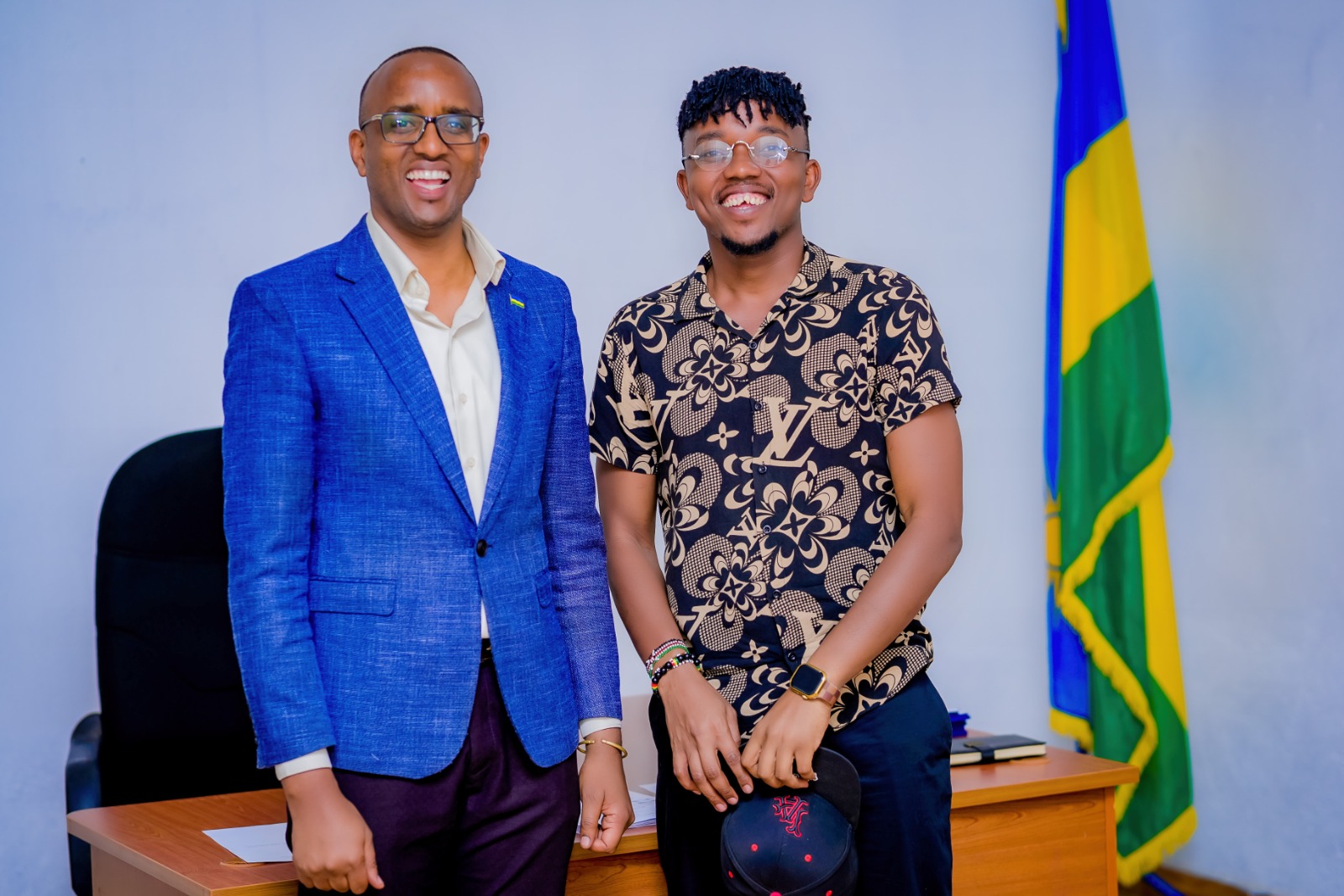 Imbamutima za Bwiza akimara gushyikiriza album ye Meya wa Bugesera Richard Mutabazi.