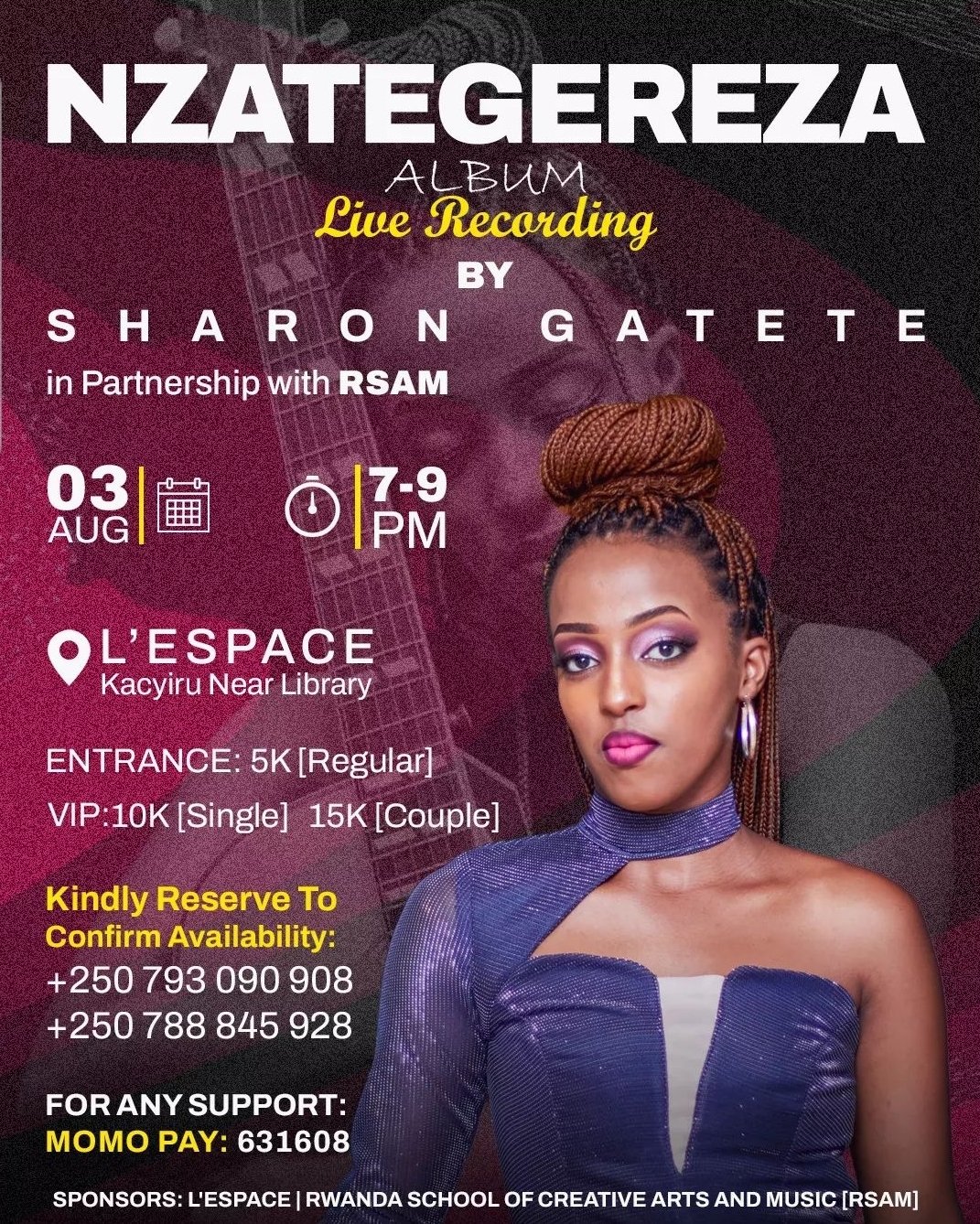 Yakomoje ku ntandaro yo gutegura igitaramo cyo gufata amajwi n’amashusho bya Album ye ya mbere (Nzategereza Live Album) giteganyijwe kuwa Kane tariki 03/08/2023 kuva saa moya z’ijoro ku Kacyiru ahitwa L’Espace hafi y’Isomero ry’igihugu (Kakiru Library).