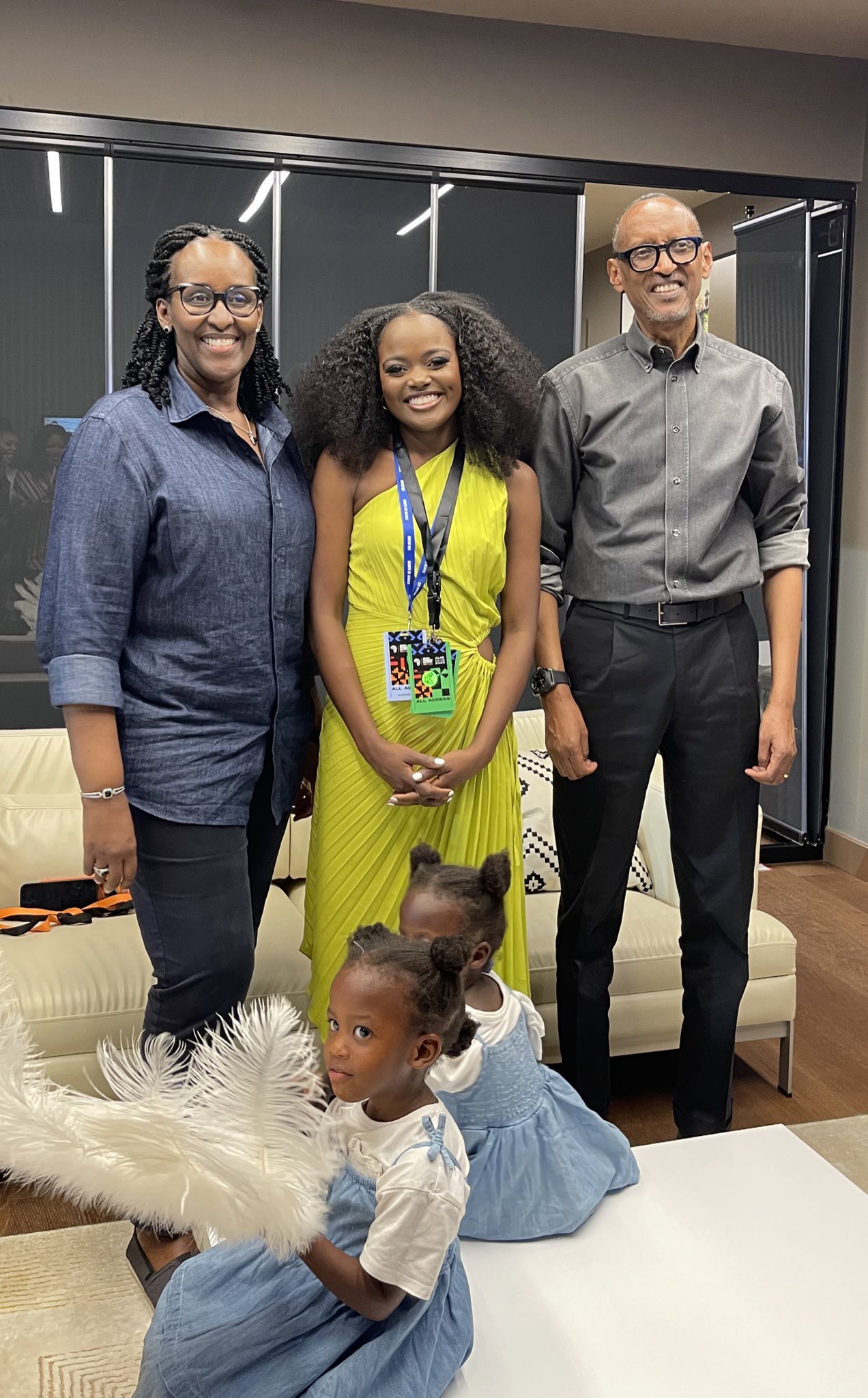 Sherrie yataramiye imbere ya Perezida Kagame na Madamu Jeannette Kagame