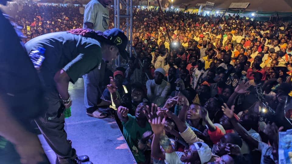 Uwo muhanzi yahamagawe kuri stage n'abashyushyarugamba MC Clara na MC Fab ahagana Saa tatu zuzuye z'ijoro ariko ntibyamworohera guhita agera ku rubyiniro kuko yahageze nyuma y'iminota 7. Yinjiye ku rubyiniro bitamworoheye, biturutse ku bwinshi bw'abakunzi be bashakaga kumukoraho.