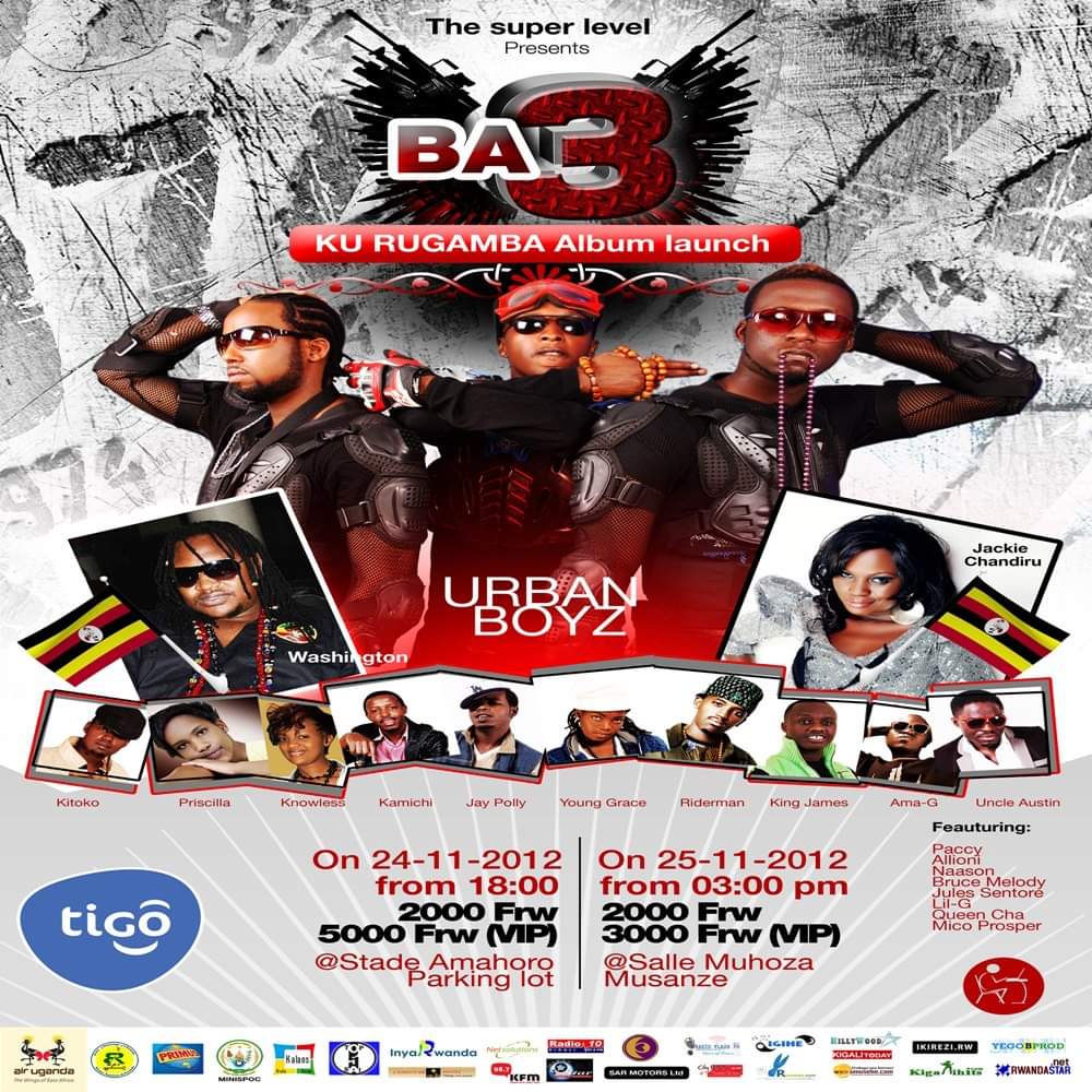 Mu 2009 ubwo The Ben yamurikaga umuzingo yise “Amahirwe ya nyuma " yari album ya mbere ashyize hanze. Icyo gihe kwinjira byari 5000 Frws ya kiriya gihe mu myanya y’icyubahiro. Igitaramo cyo kumurika album ya Urban Boyz ya 6 bise ’Adam&Eve' ari nayo basorejeho urugendo rwabo nk’itsinda, kwinjira ahasanzwe byari 2000 Frws, ahisumbuye ari 3000 Frws.