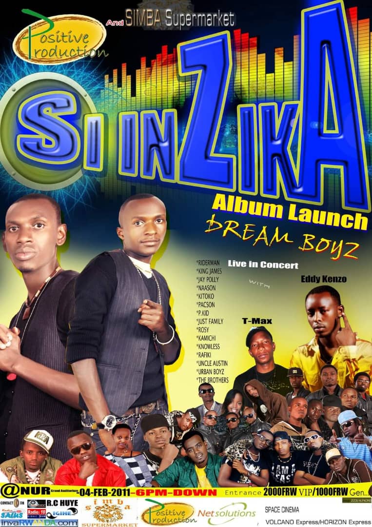 Ku itariki 04 Gashyantare 2011 Dream Boyz bamurika umuzingo bise "Sinzika " hari hatumiwe Eddy Kenzo. Kwinjira byari 1000 Frws ahasanzwe na 2000 Frws ku bakire ’VIP’. Igitaramo cyabereye mu nzu mbera byombi ya Kaminuza nkuru y’u Rwanda ikitwa UNR/NUR.
