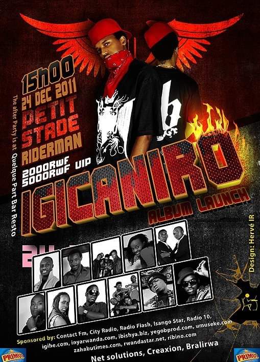 Riderman amurika umuzingo yise "Igicaniro " ku itariki 24 Ukuboza mu 2011 kuri Petit Stade i Remera, kwinjira ahasanzwe byari 2000 Frws, abafite amafaranga bishyuraga 5000 Frws ’VIP’ hamwe bicara nta muntu ubatera icyugazi.
