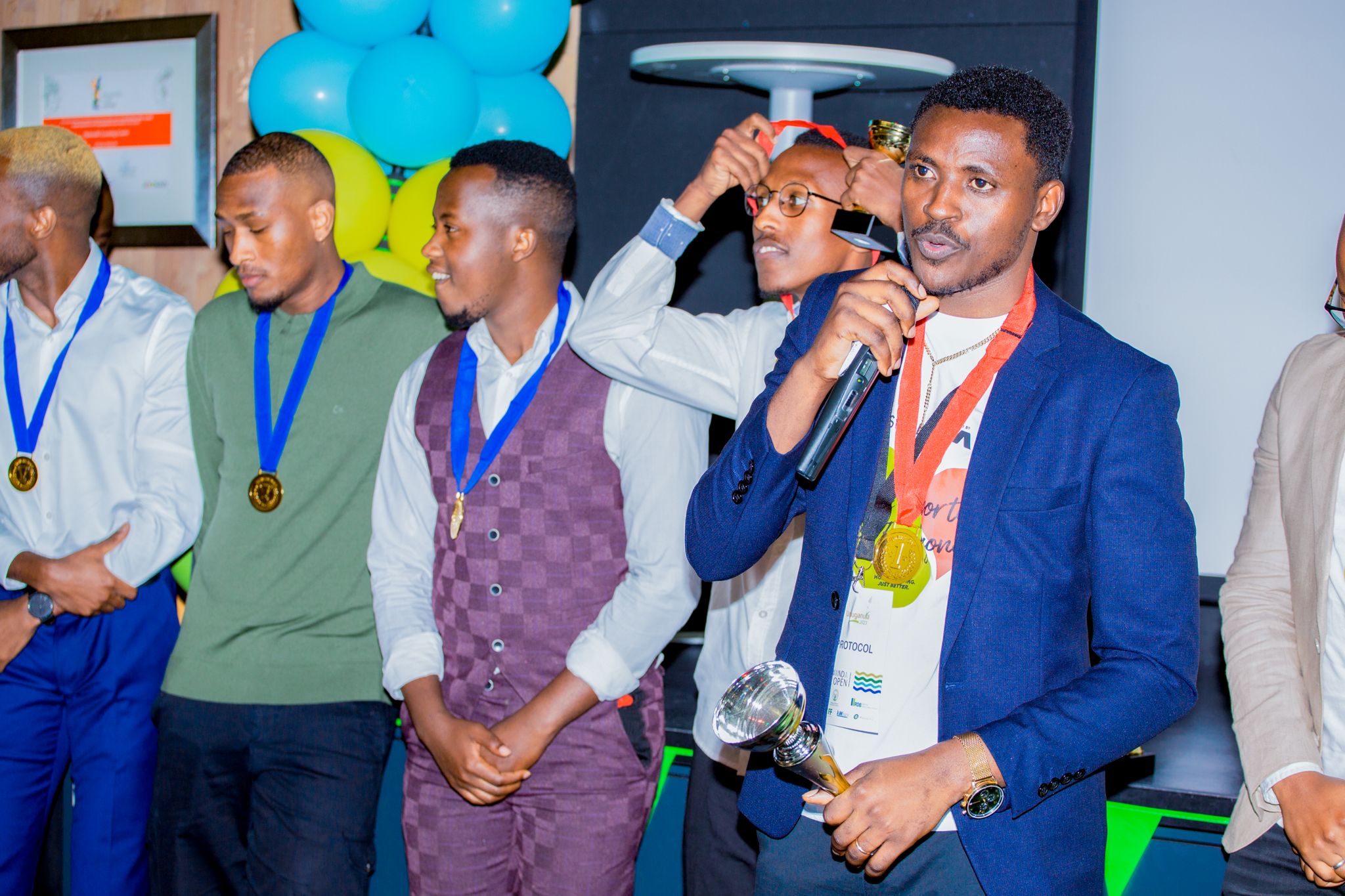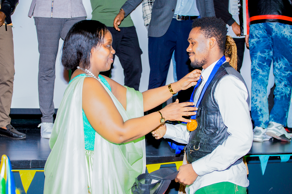 Gashumba yafashe umwanya yambika imidari abakinnyi bose ndetse n’umutoza