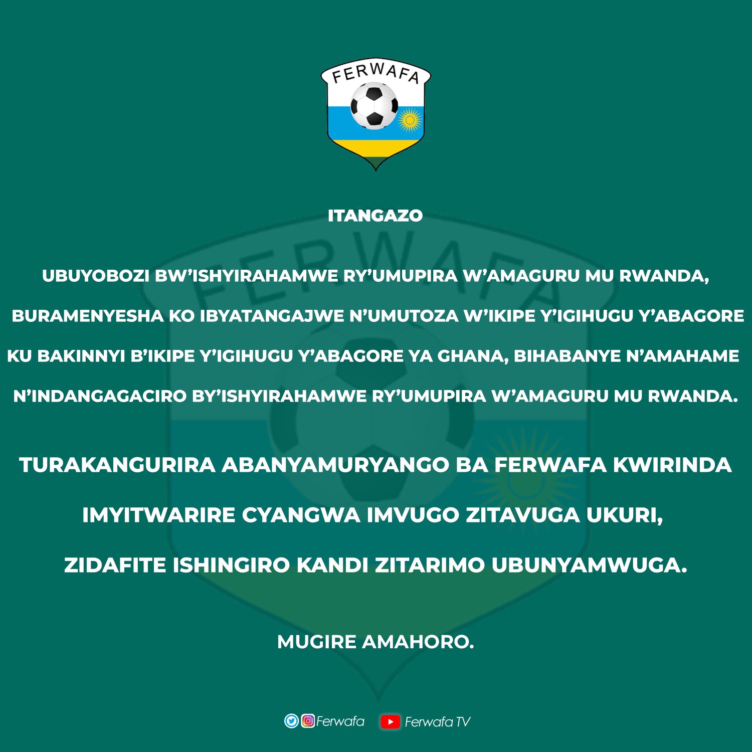 Mu magambo yabo, banditse bati "Ubuyobozi bw'ishyirahamwe ry'umupira w'amaguru mu Rwanda buramenyesha ko ibyatangajwe n'umutoza w'ikipe y'igihugu y'abagore ku bakinnyi b'ikipe y'igihugu ya Ghana, bihabanye n'amahame n'indangagaciro by'ishyirahamwe ry'umupira w'amaguru mu Rwanda".