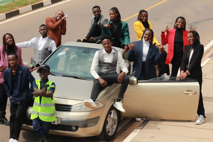 itangira abaririmbyi bari mu rugendo bihuta mu mudoka bagaharikwa na Police,