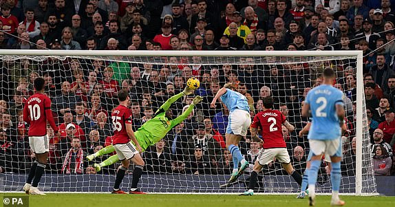 Igice cya mbere kigiye kurangira Onana yakuyemo igitego cyabazwe ku mutwe uremereye wari urekuwe na Erling Haaland bituma bajya mu kiruhuko Manchester City igifite 1-0.
