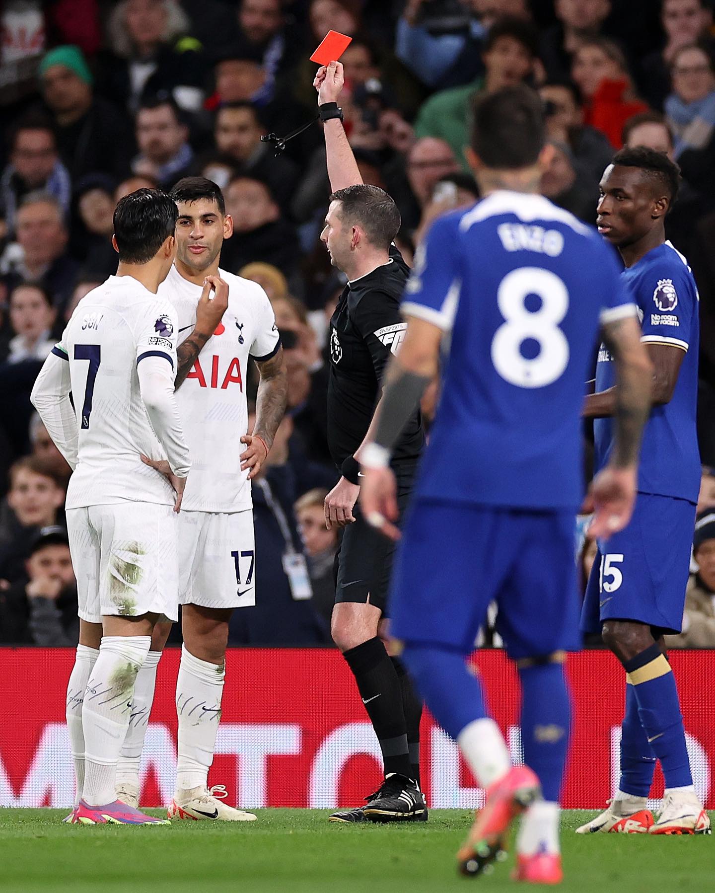 Mu gice cya kabiri nabwo abakinnyi ba Chelsea baje bafite inyota yo kubona igitego cya 2. Tottenham Hotspur yongeye kubona indi karita itukura ihawe myugariro Udogie ku ikosa yakoreye Rahim Sterling.