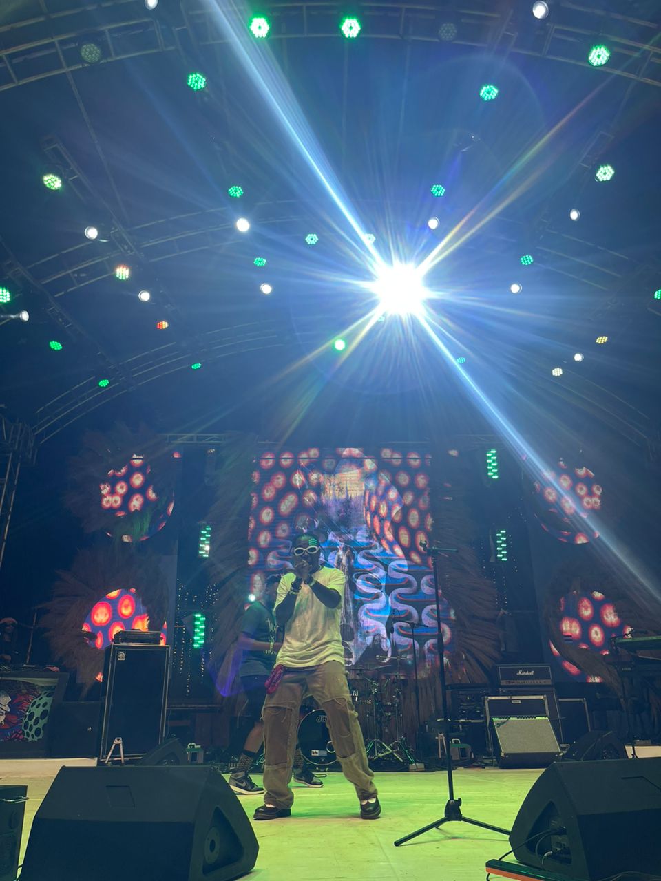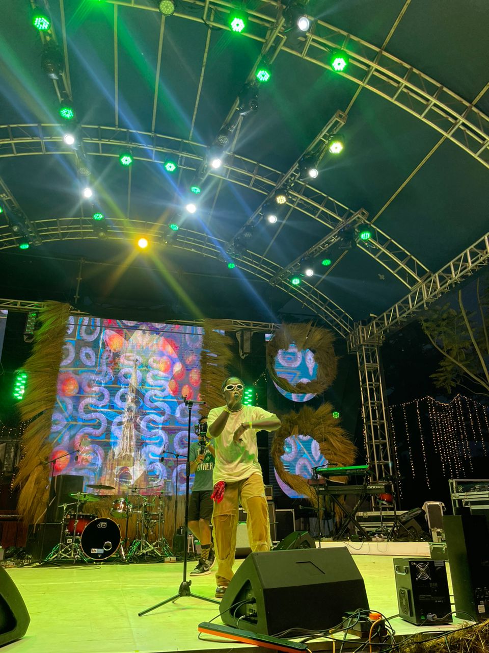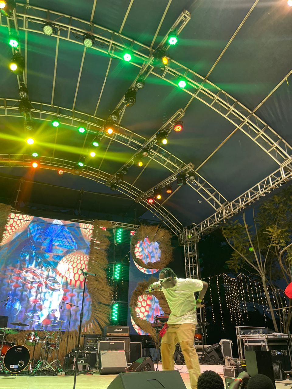 Umuraperi Bushali ku rubyiniro mu iserukiramuco rya 'Nyege Nyege' muri Uganda