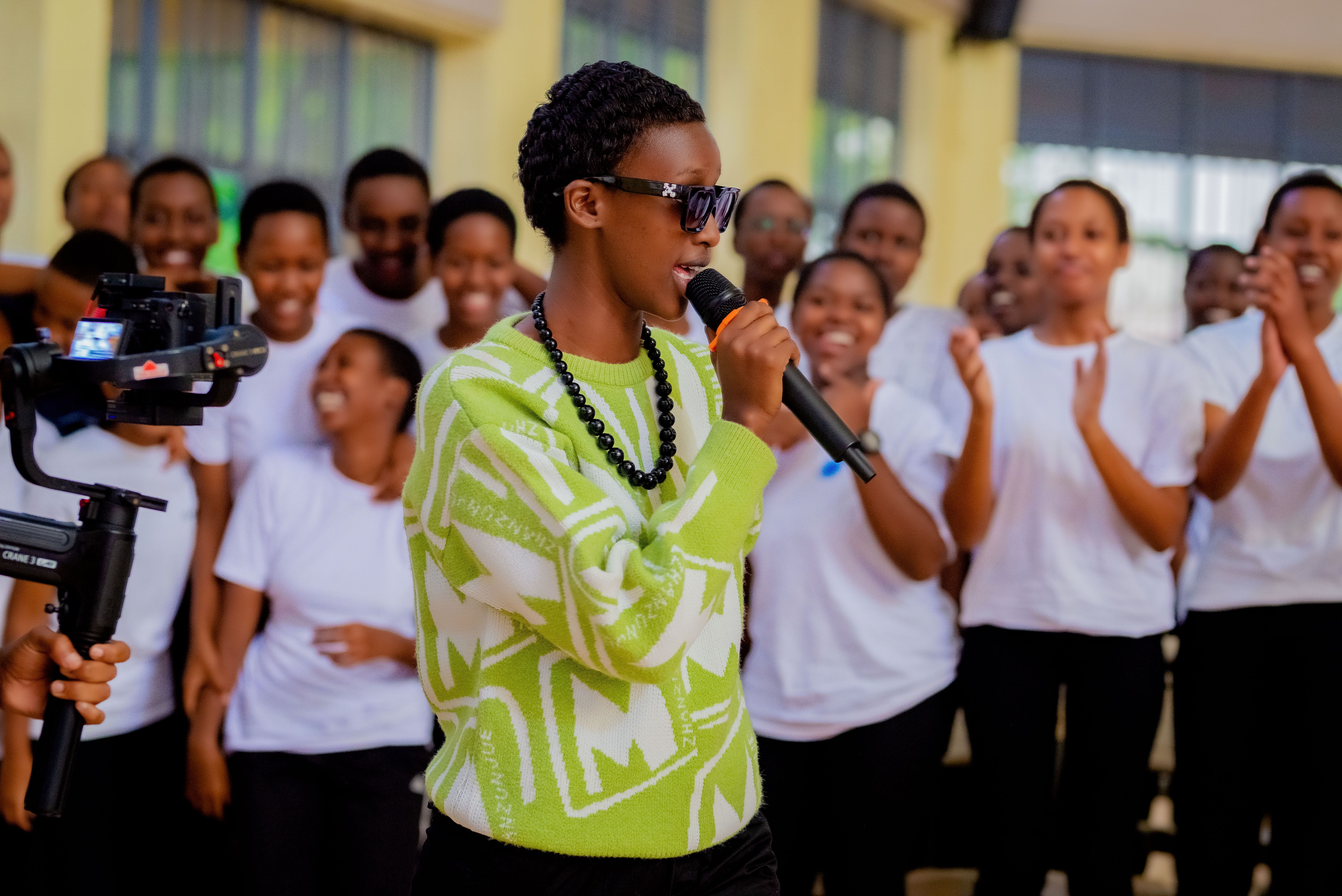 Yaririmbanye n'abanyeshuri bigaragara ko indirimbo ze zose bazizi neza