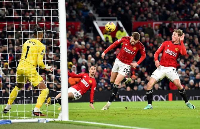 Ku munota wa 70 Mc Tominay yatsinze igitego cya 2 cya Manchester United akoresheje umutwe ku mupira wazamuwe na Garnacho.