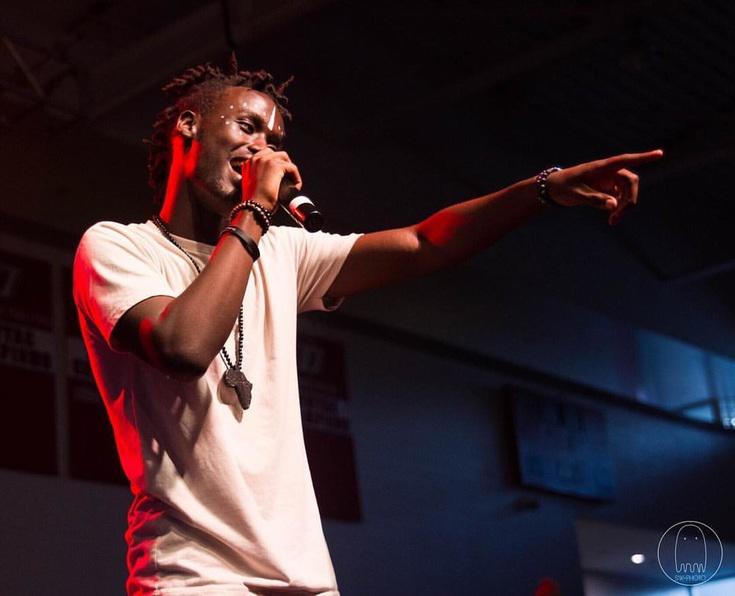 Umuraperi Denis Kanaka ubwo yari ku rubyiniro mu gitaramo yahuriyemo na T-Pain