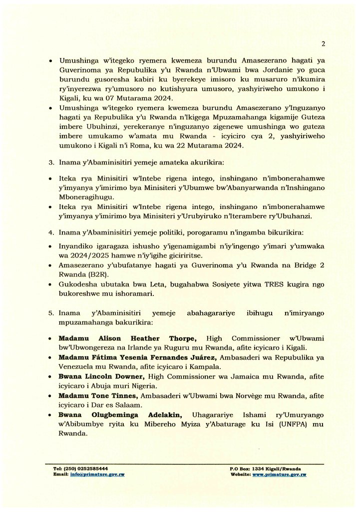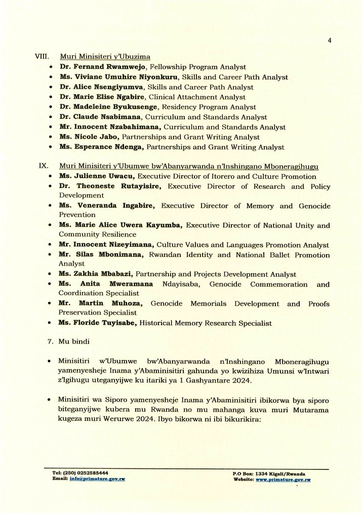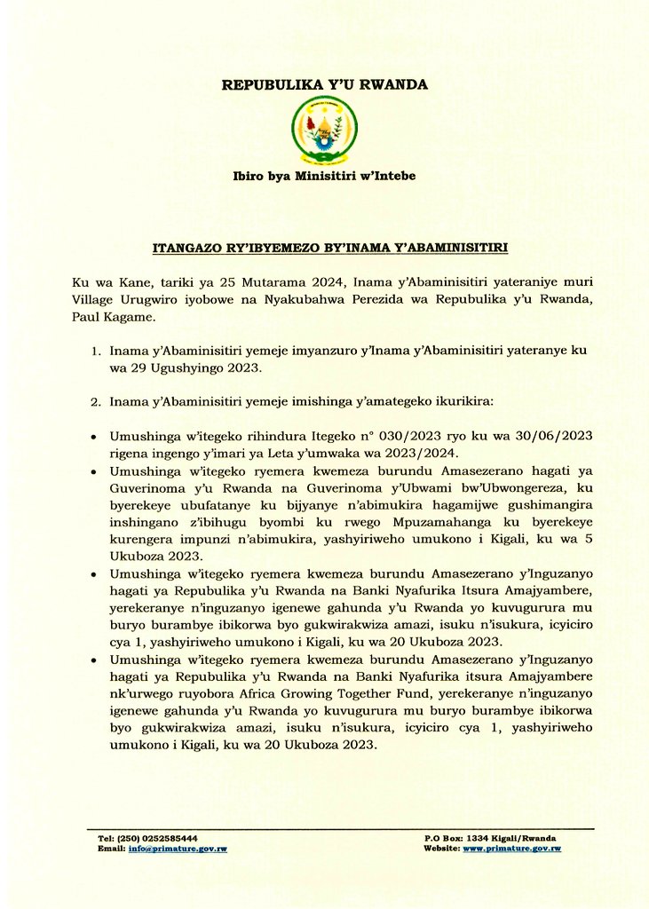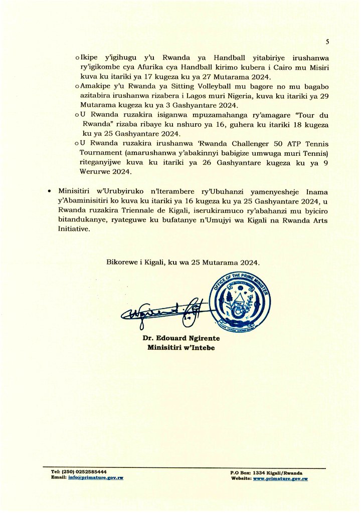 Minisitiri w'Urubyiruko ndetse n'iterambere ry'Ubuhanzi, Utumatwishima yabimenyesheje Inama y'Abaminisitiri yateranye kuri uyu wa Kane tariki 25 Mutarama 2024, iyobowe na Perezida Kagame muri Village Urugwiro.