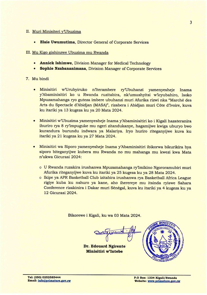 Itangazo ry’Ibyemezo by’Inama y’Abaminisitiri yateraniye muri Village Urugwiro yateranye ku wa 3 Mata 2024