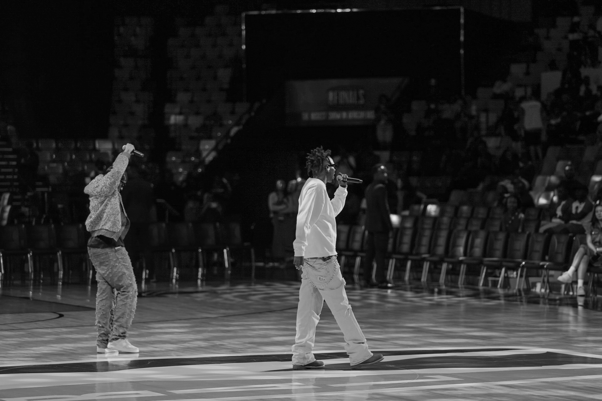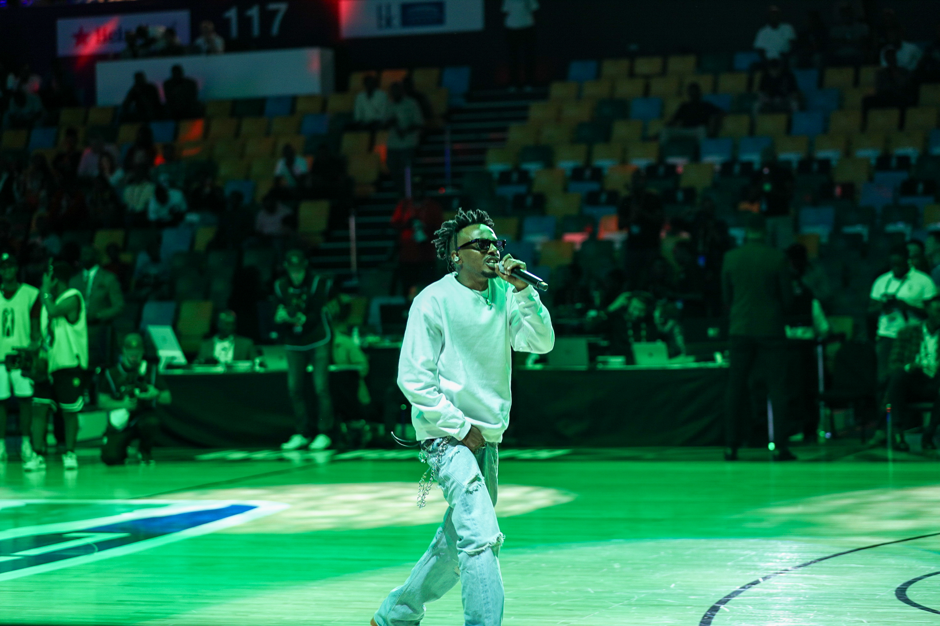 Ubwo uyu mukino wari ugeze hagati abakinnyi bari mu karuhuko, Juno Kizigenza yakiranywe urugwiro ku rubyiniro, afatanya na Shemi bafitanye indirimbo kuzamura ibyishimo by'abitabiriye iyi mikino.