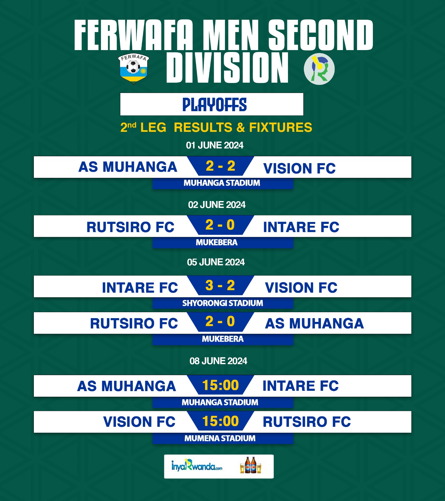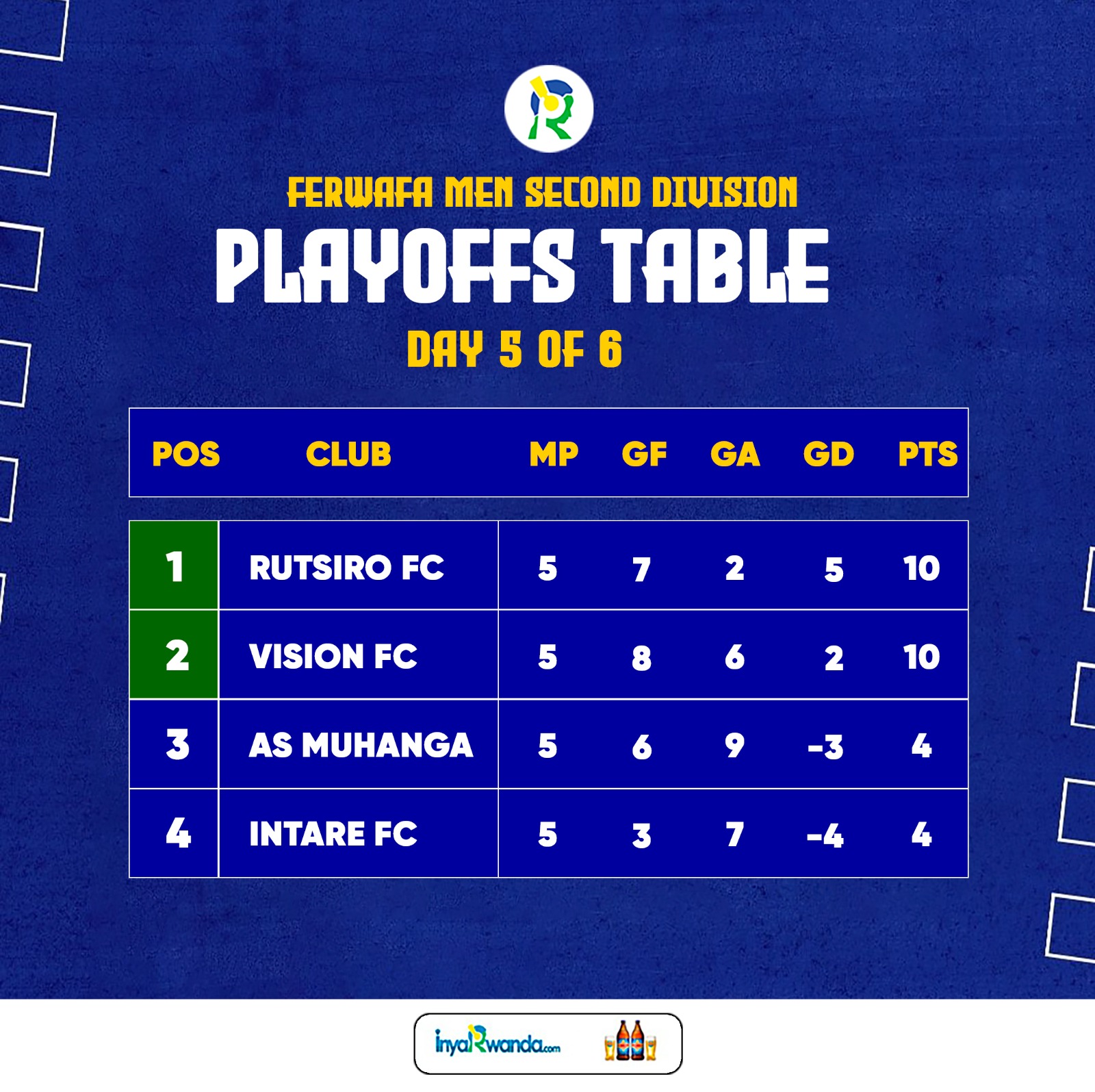 Ubwo bivuze ko niyo uwo mukino umwe usigaye Rutsiro FC yawutsindwa n'ubundi yakomeza kuba ku mwanya wa 2 uyemerera kuzamuka mu cyiciro cya mbere.