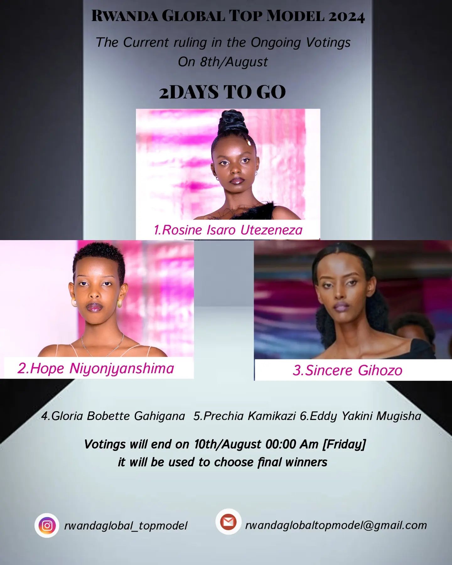 Ni mu gihe umunyamideli uzahiga abandi mu majwi yo kuri Internet azahembwa ibihumbi 300 Frw, kandi ashyirwe muri batatu bazavamo abazahabwa ibihembo.