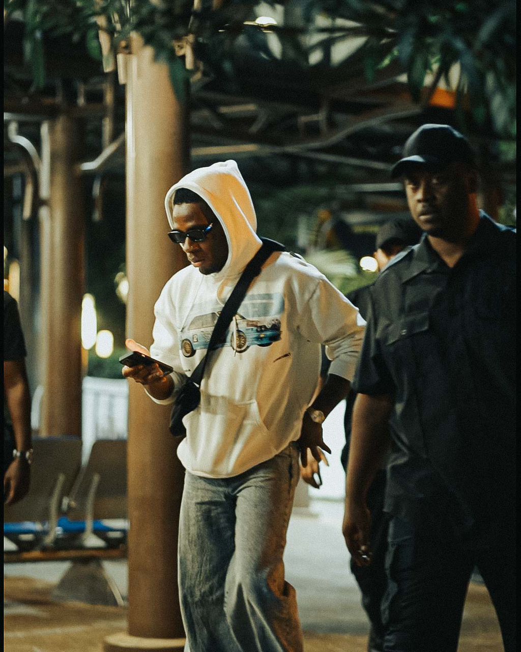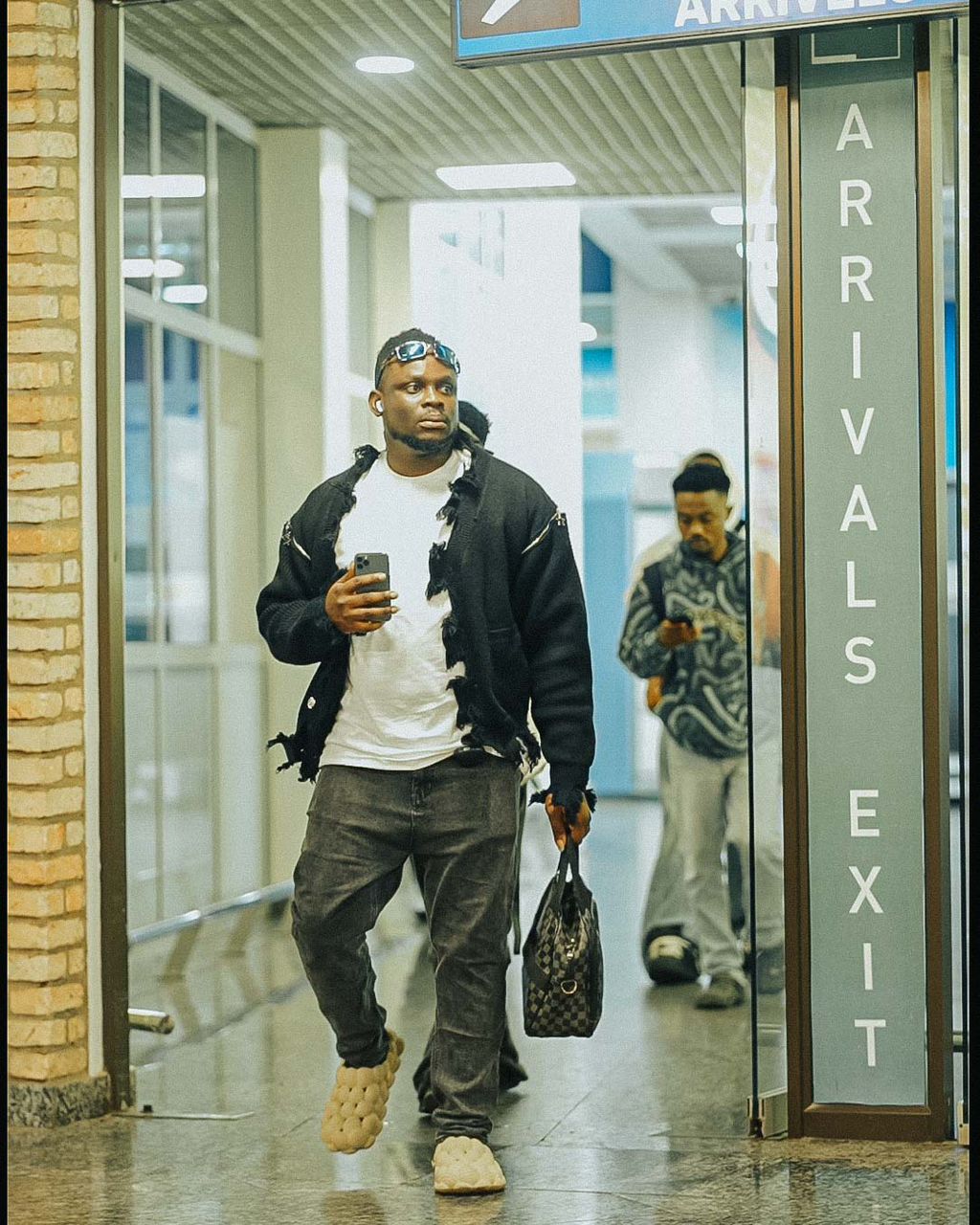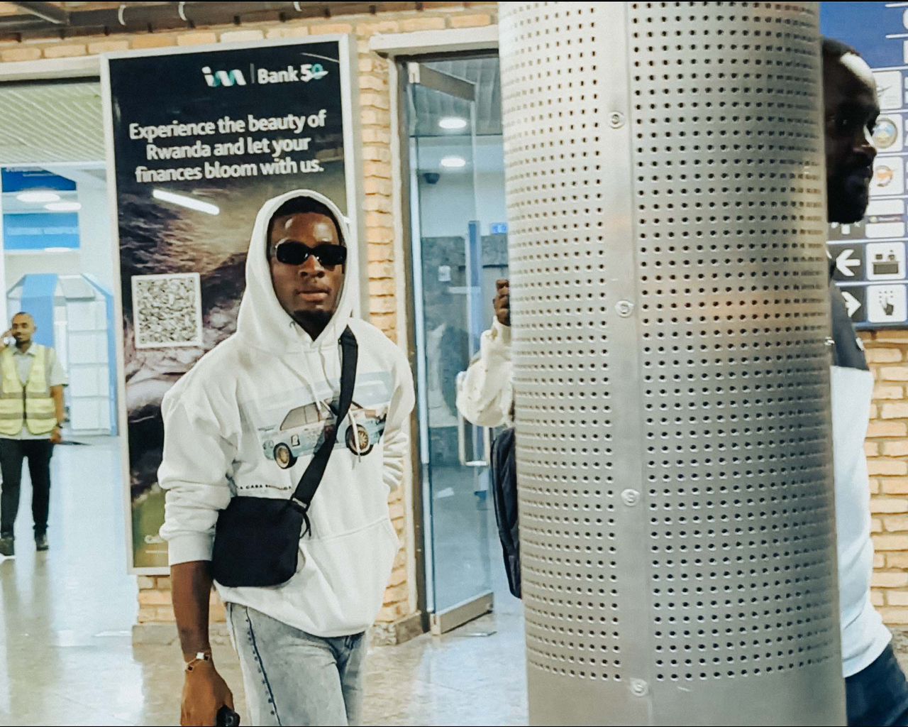Jean Luc [Mubi Cyane], usanzwe ari umurinzi wa Bruce Melodie yari kumwe na Joeboy ku kibuga cy'indege