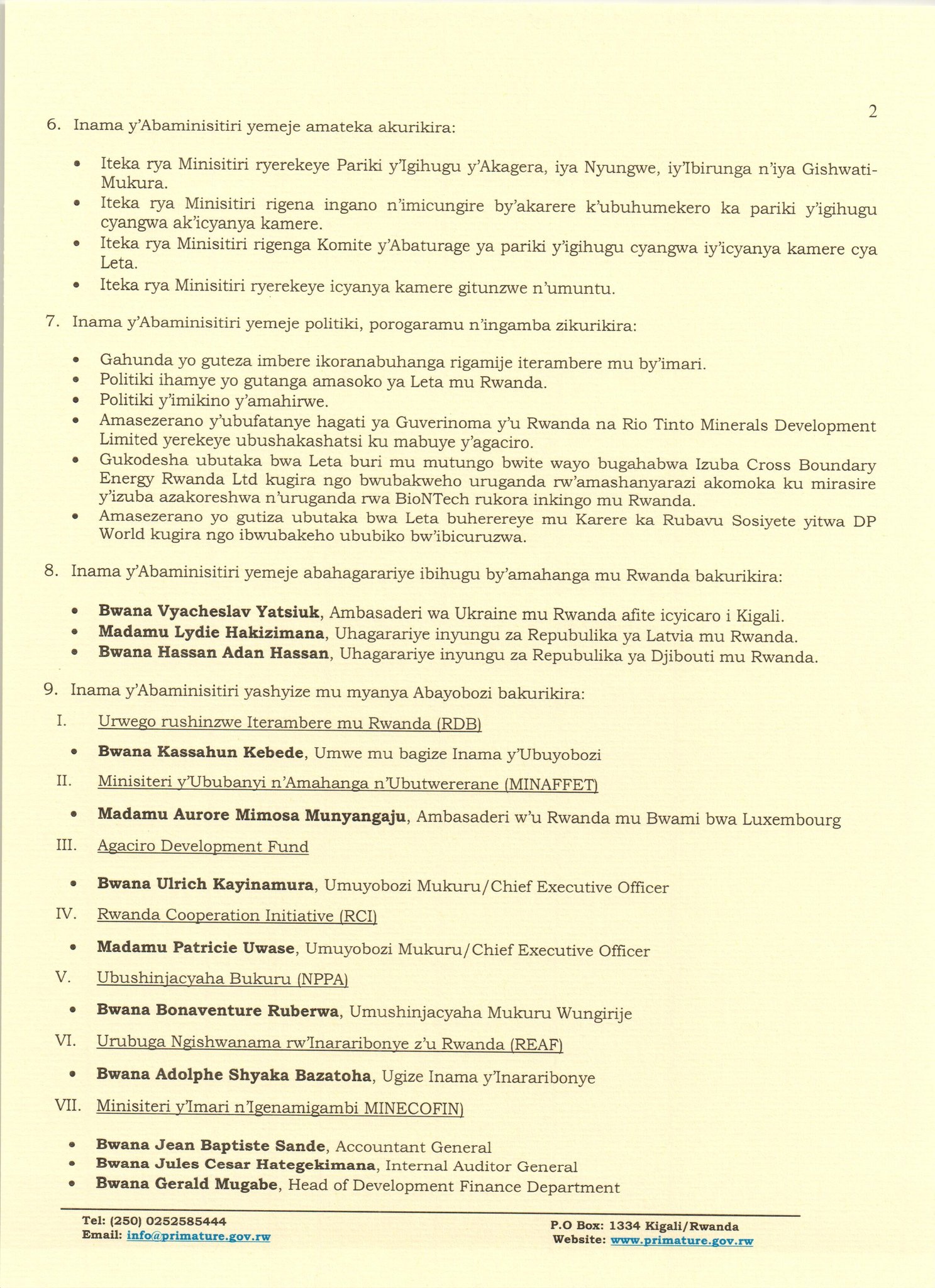 Itangazo ry'Ibyemezo by'Inama y'Abaminisitiri