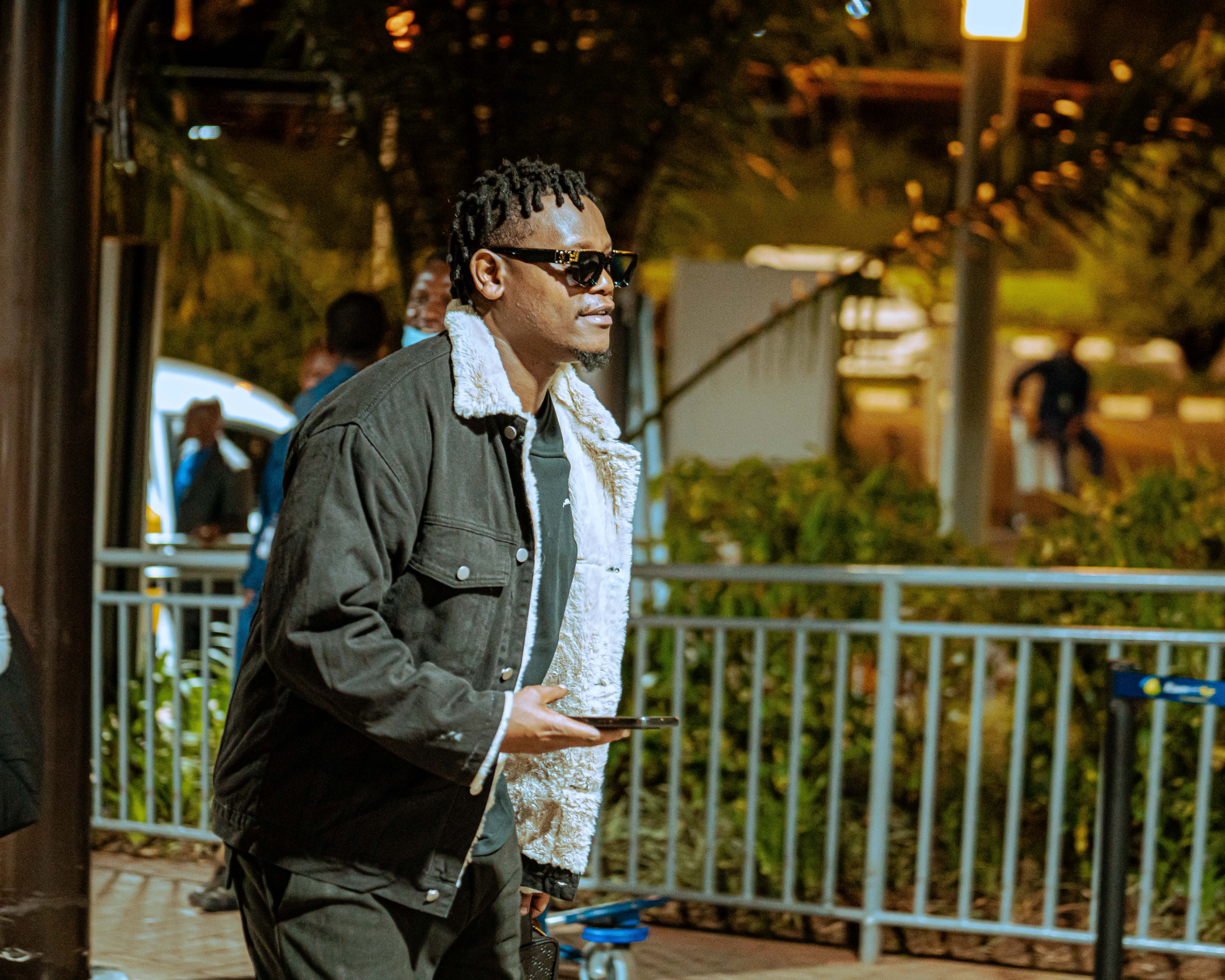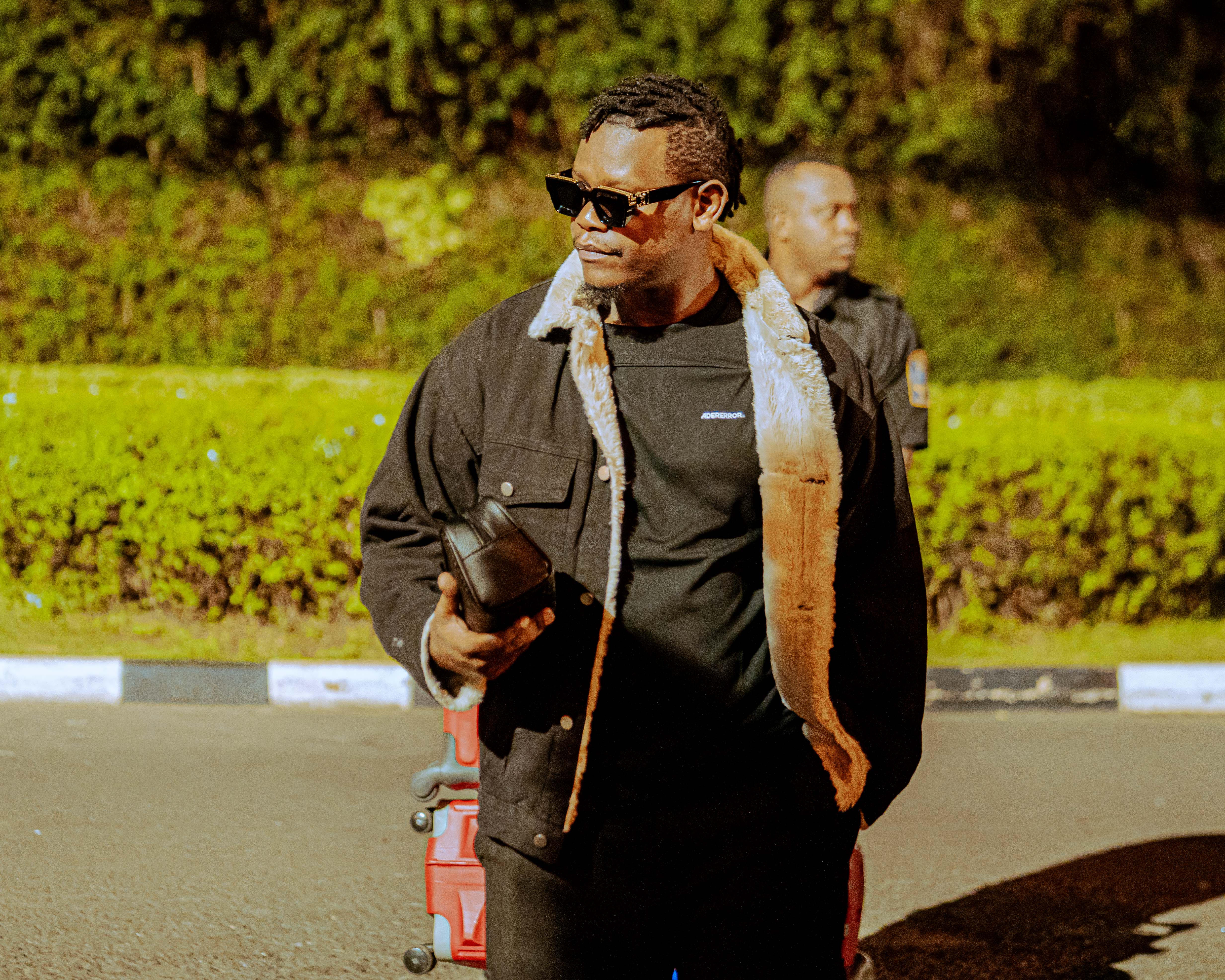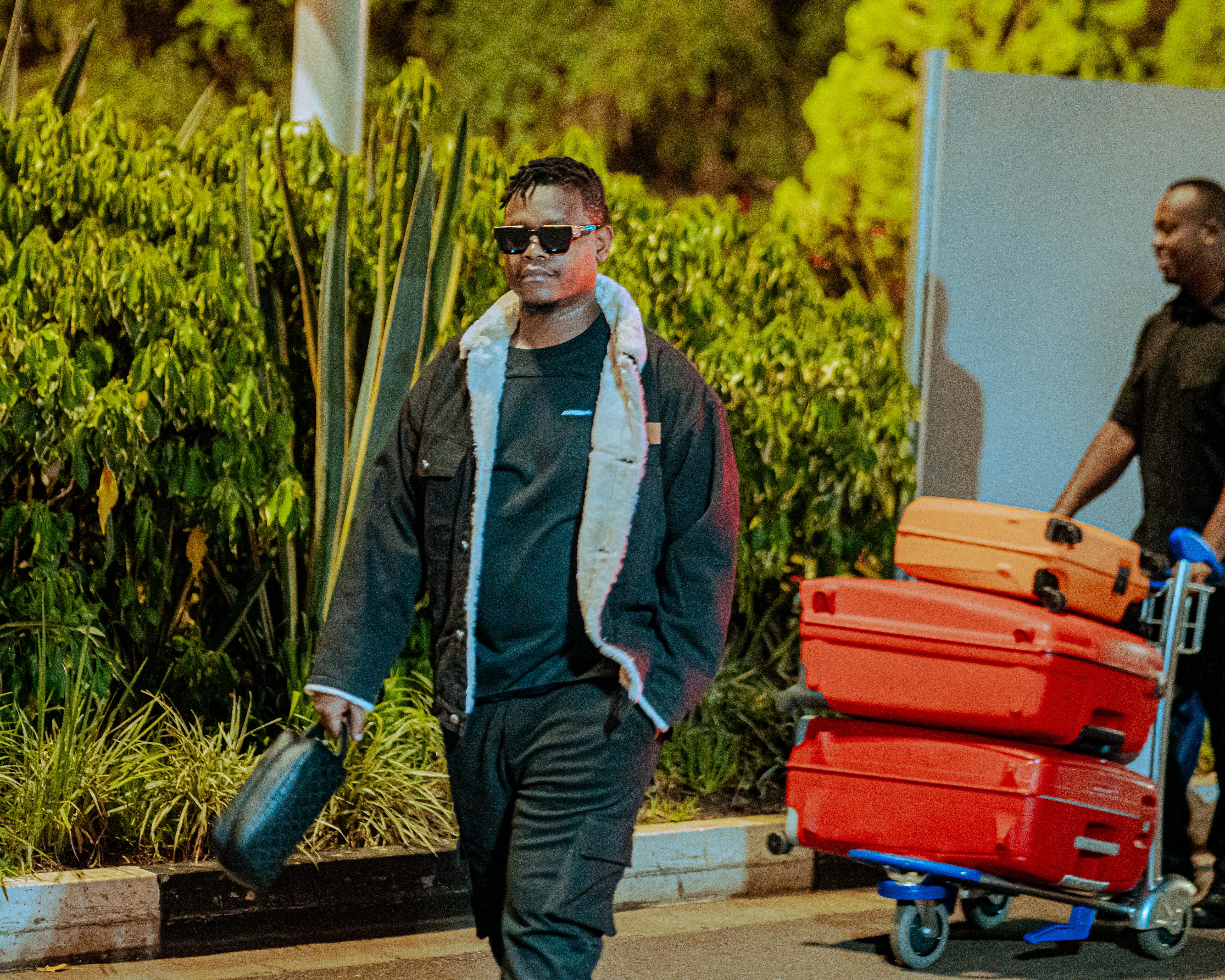 Yahagurutse ku kibuga cy'indege Mpuzamahanga cya Kigali mu ijoro ryo kuri uyu wa Mbere tariki 21 Ukwakira 2024, ari kumwe n'ikipe imufasha mu muziki.