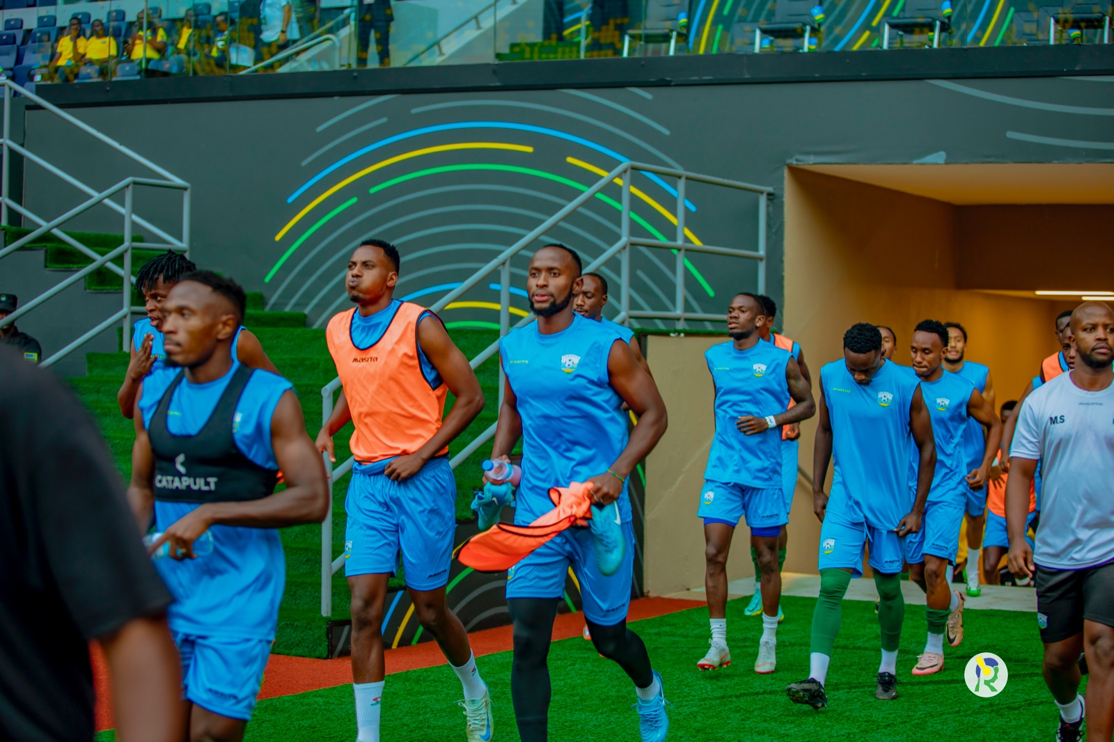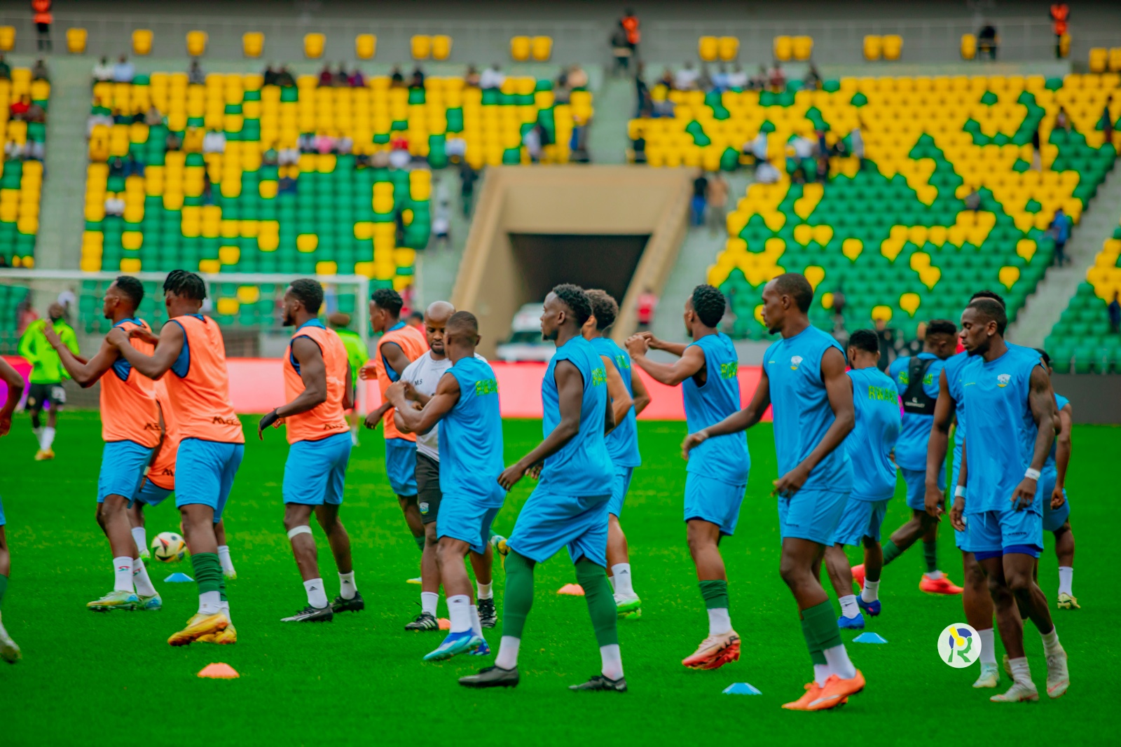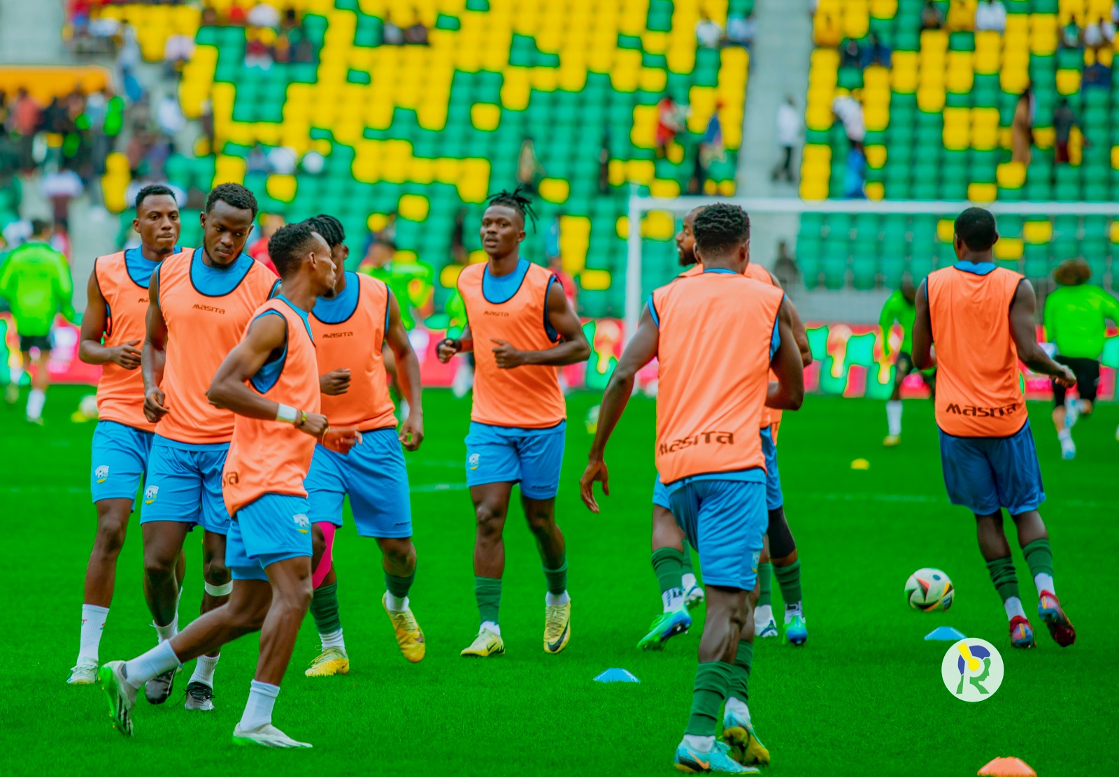 Abakinnyi b'ikipe y'igihugu y'u Rwanda Amavubi bari kwishyushya mbere y'umukino