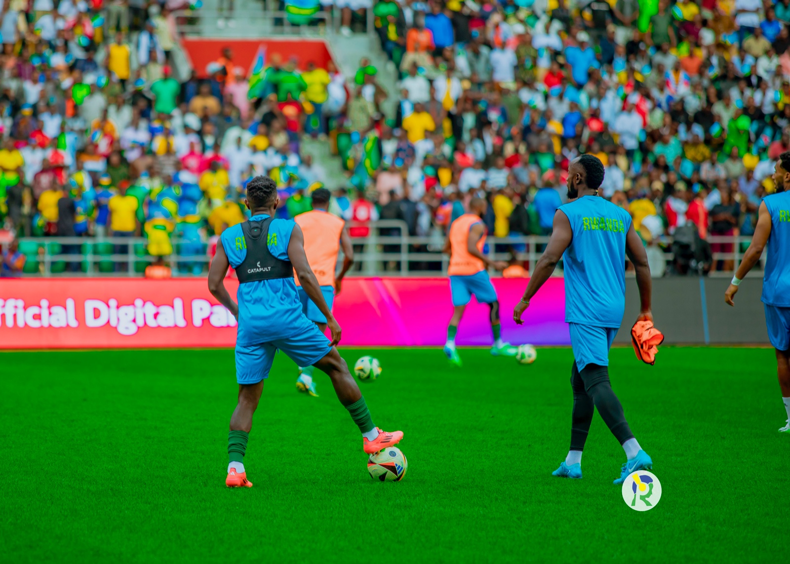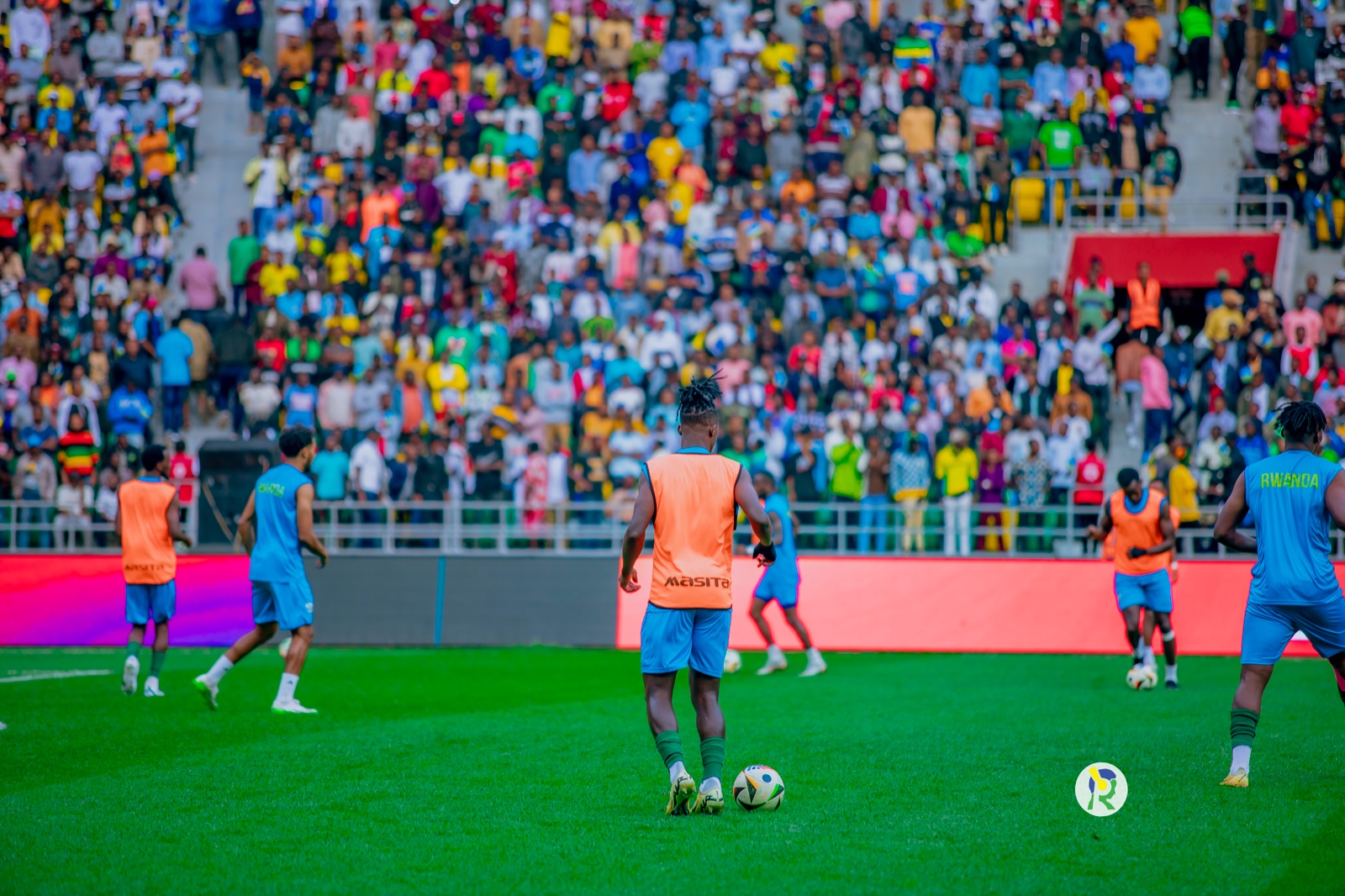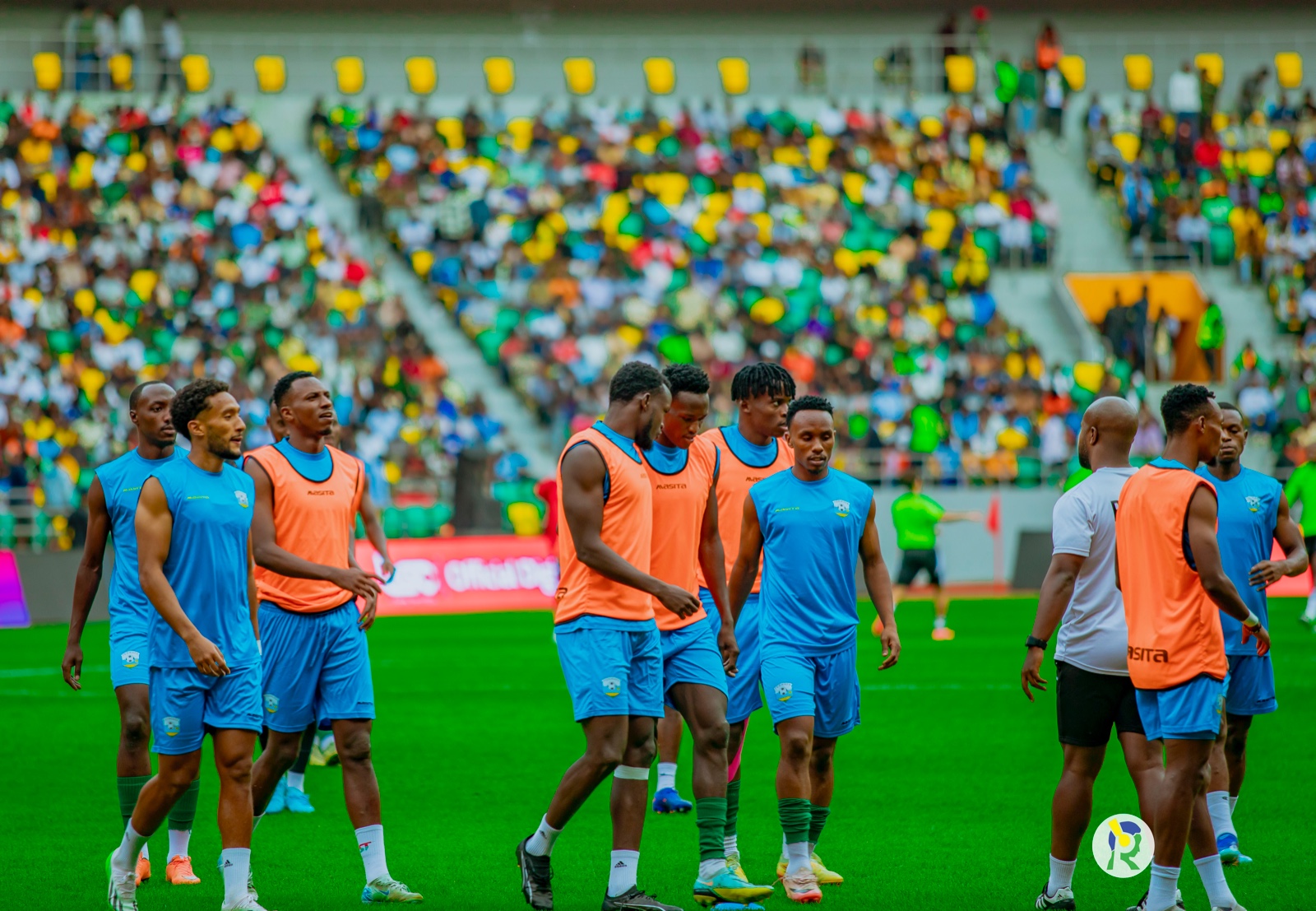 Abakinnyi b'ikipe y'igihugu y'u Rwanda Amavubi bari kwishyushya mbere y'umukino