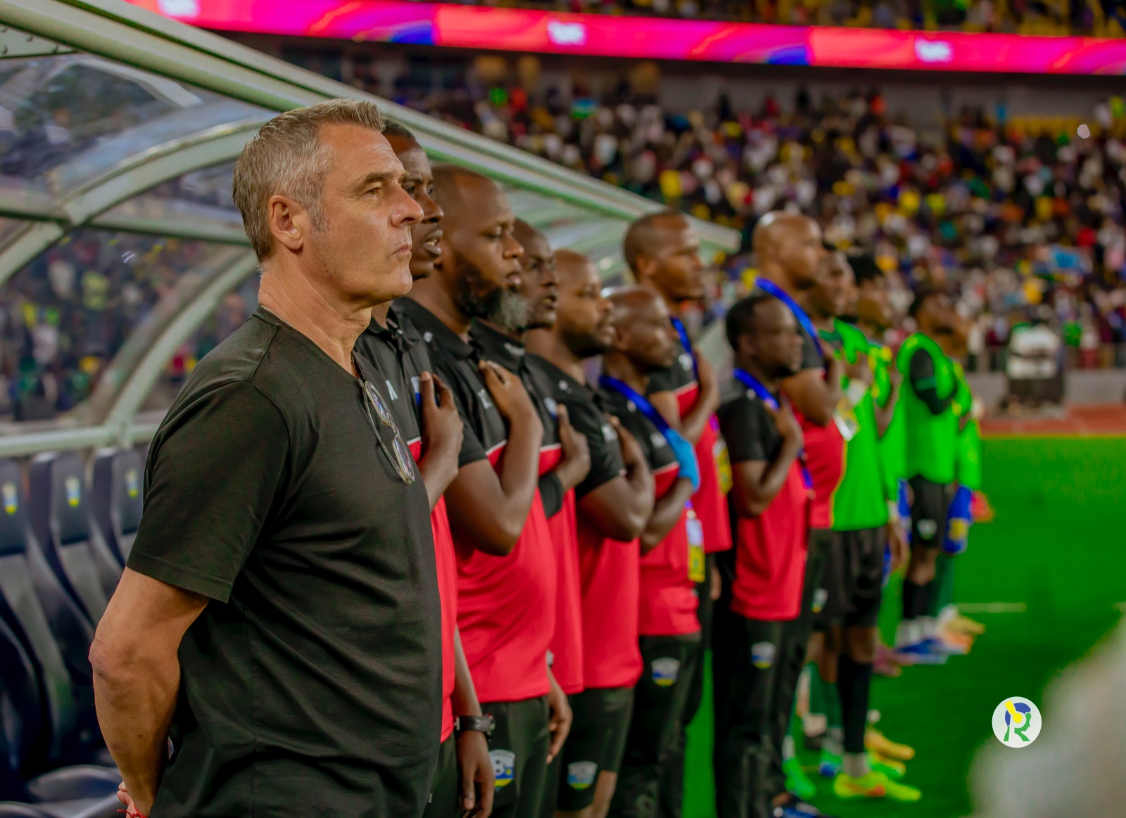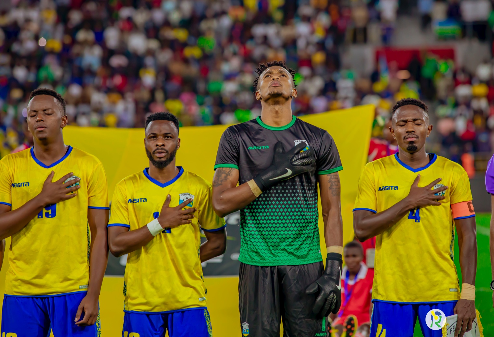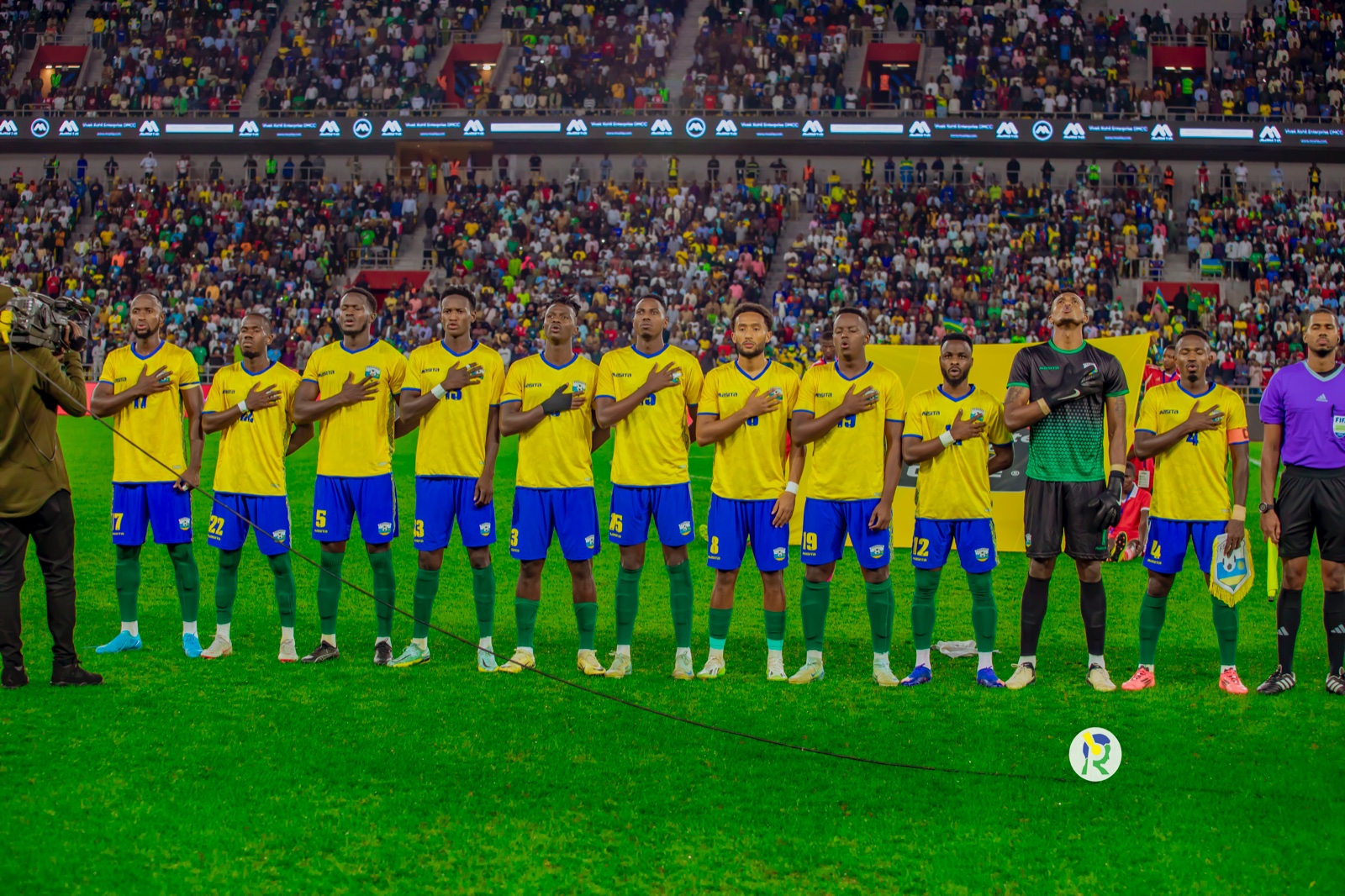 17h56' Ikipe y'igihugu y'u Rwanda iri kuririmba indirimbo yubahiriza igihugu cy'u Rwanda.