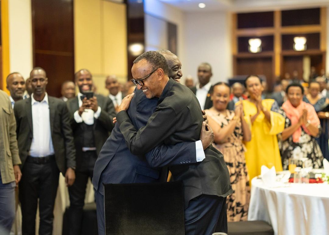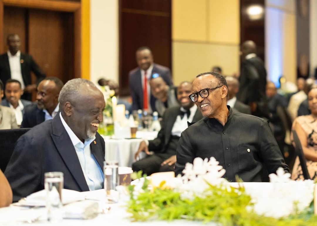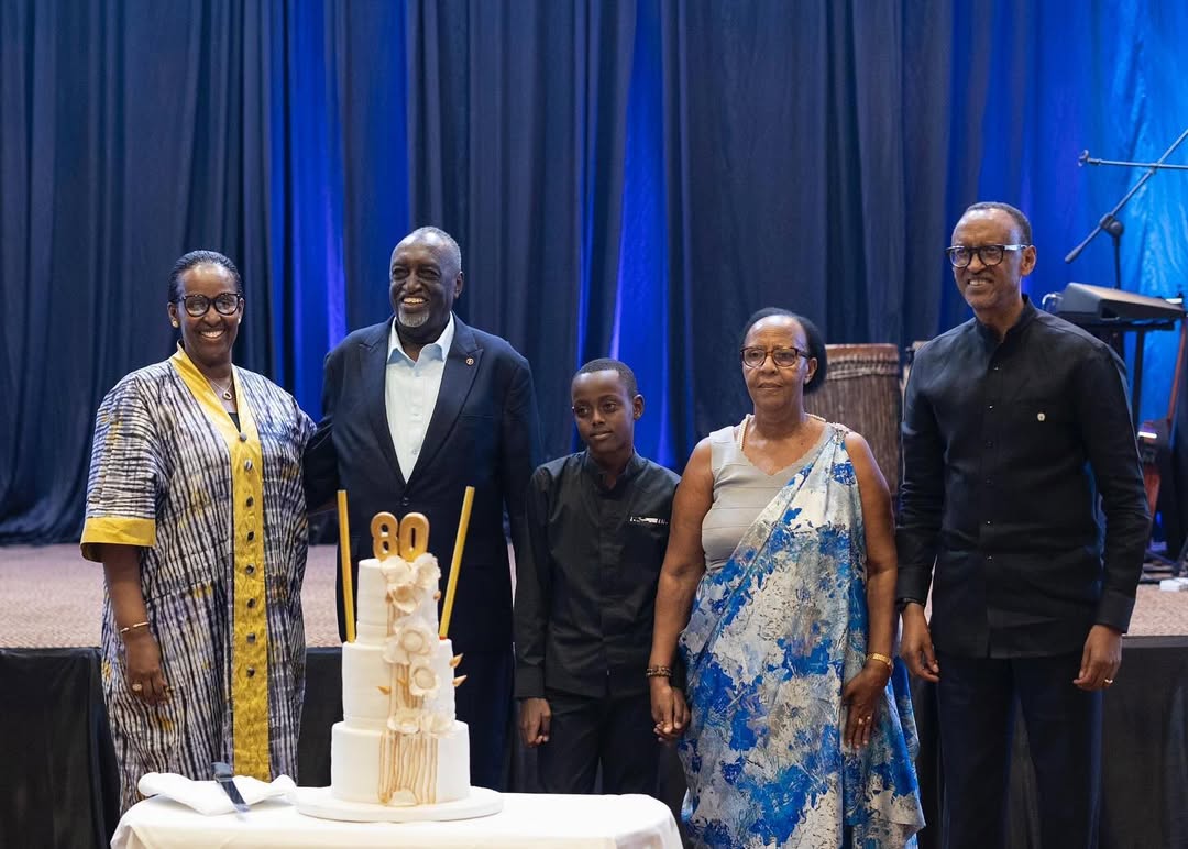 Perezida Kagame na Madamu Jeannette Kagame bifatanyije na Tito Rutaremara kwizihiza isabukuru y'imyaka 80