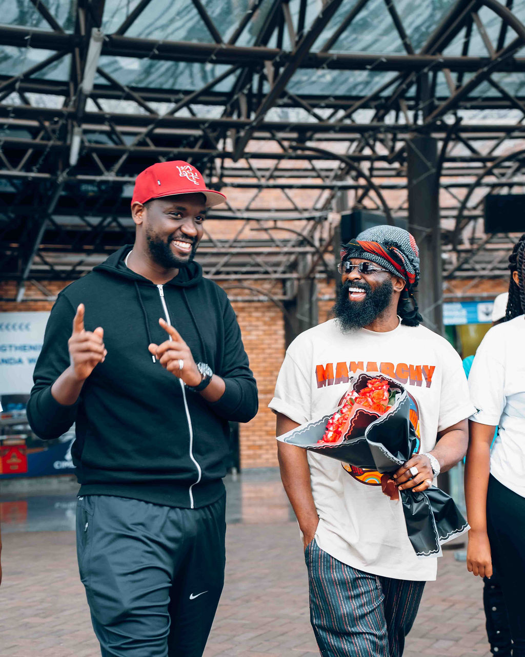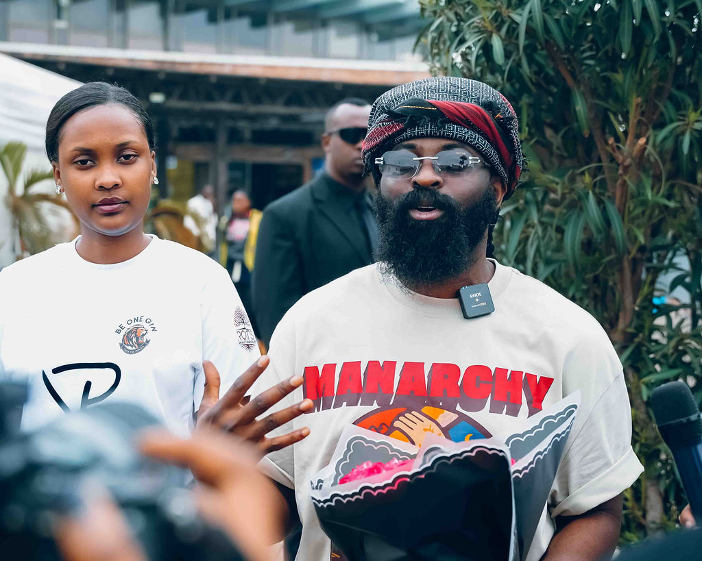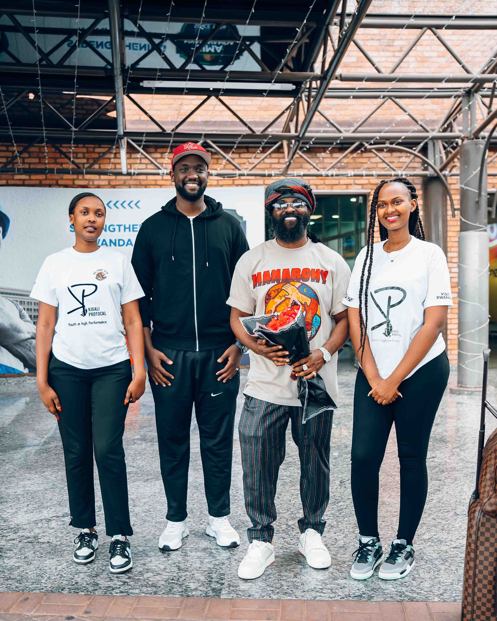 Kenny Mugarura uri mu bayobozi ba 1:55 AM [Uri iburyo] yakiriye ku kibuga cy'indege Smade washinze iserukiramuco 'Afro Nation'