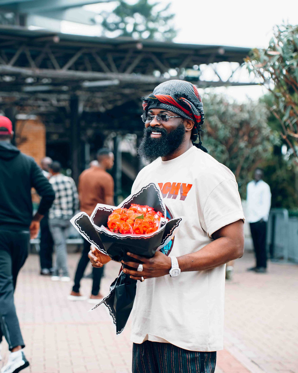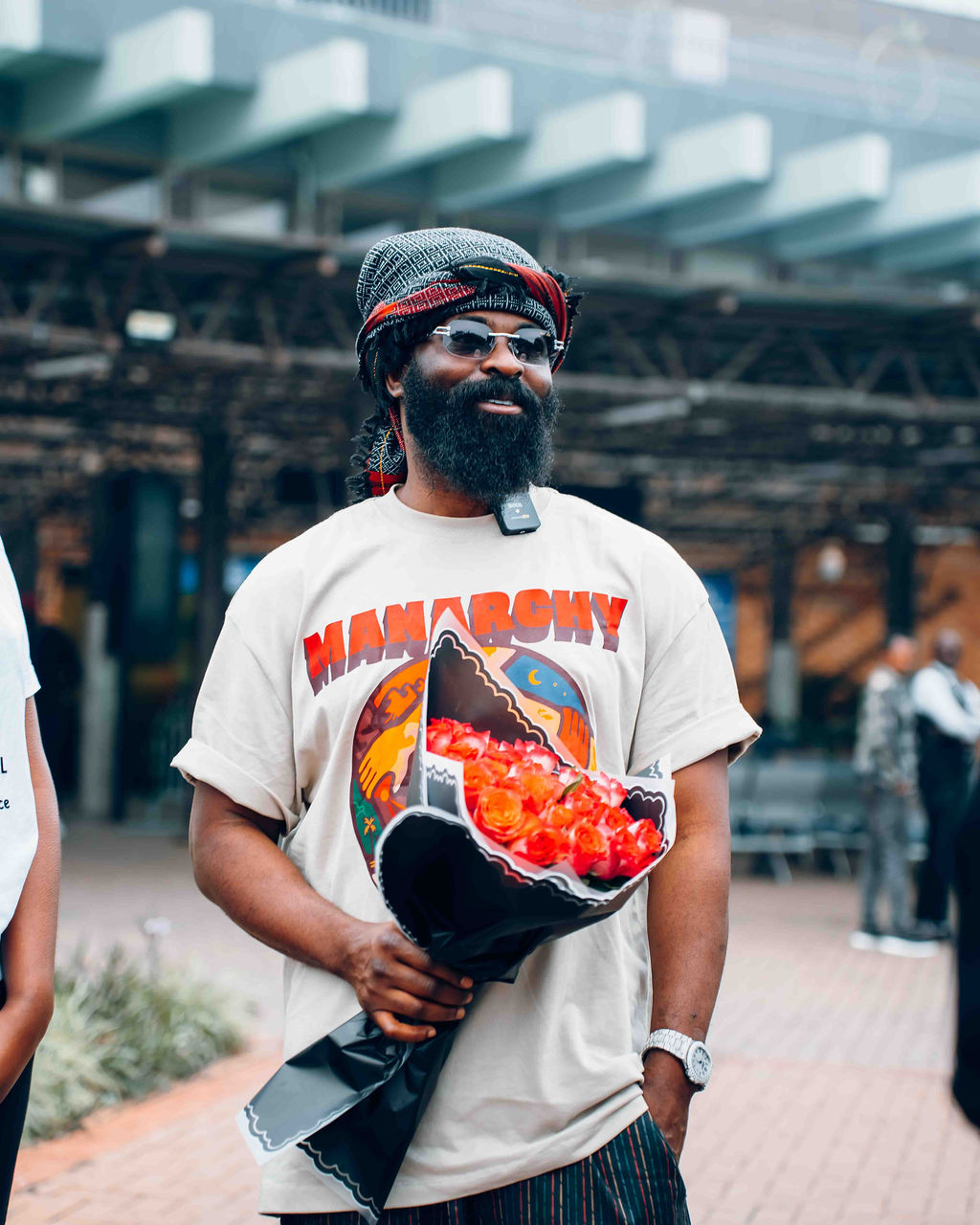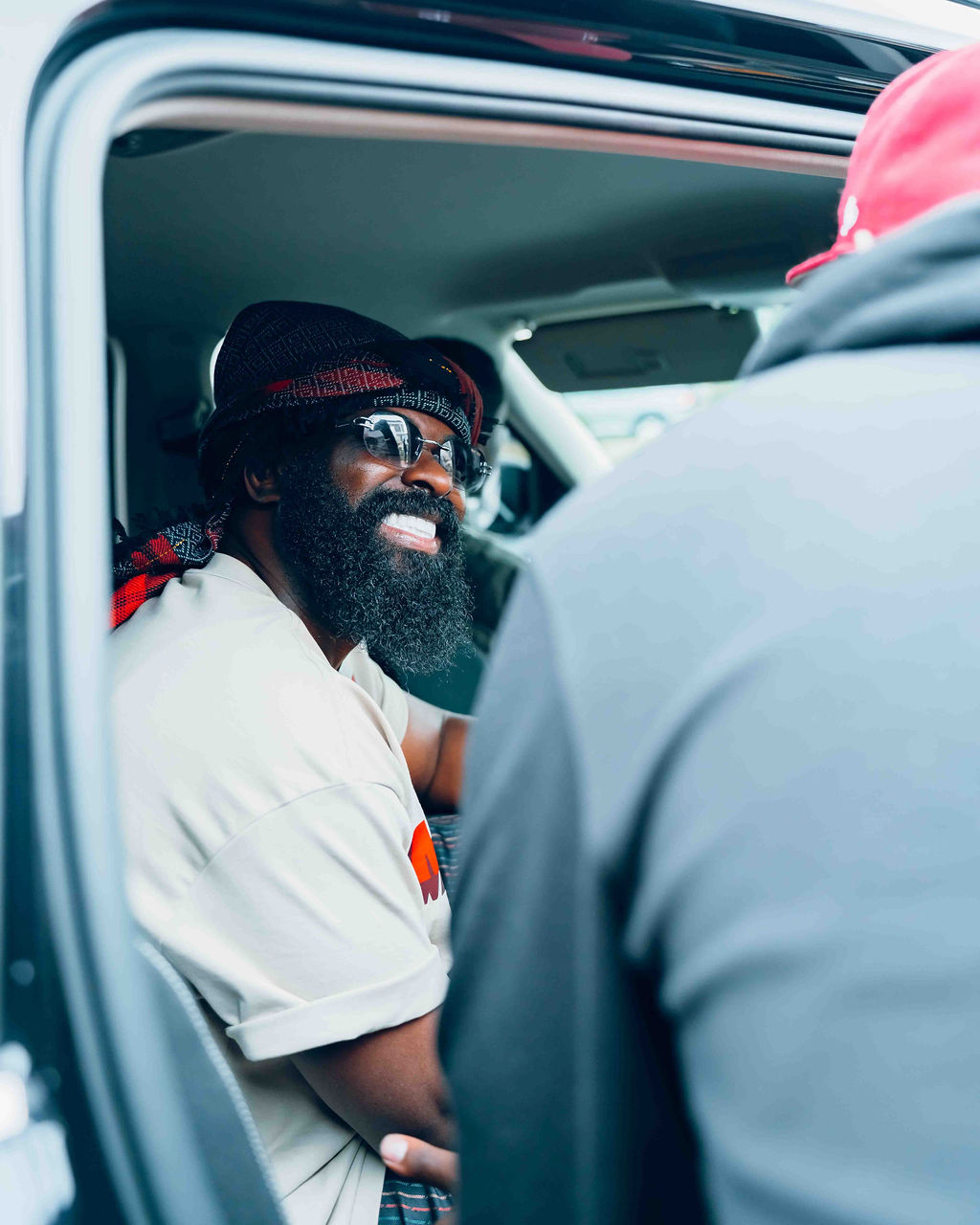 Kenny Mugarura uri mu bayobozi ba 1:55 AM [Uri iburyo] yakiriye ku kibuga cy'indege Smade washinze iserukiramuco 'Afro Nation'