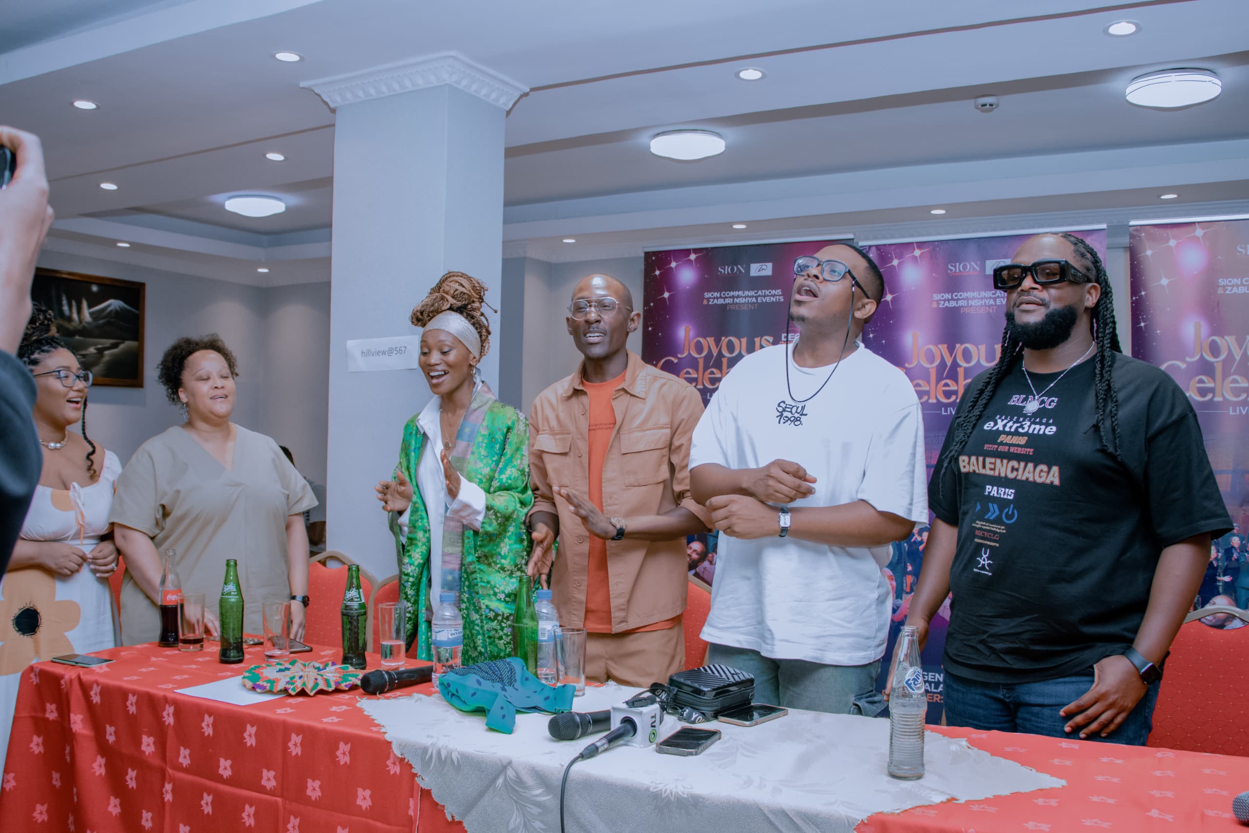 Kuwa Gatandatu, Joyous Celebration yakoze ikiganiro n'itangazamakuru kigaruka ku myiteguro y'igitaramo bafite kuri iki Cyumweru muri BK Arena aho bahurira ku ruhimbi na Gentil Misigaro ndetse na Alarm Ministries.