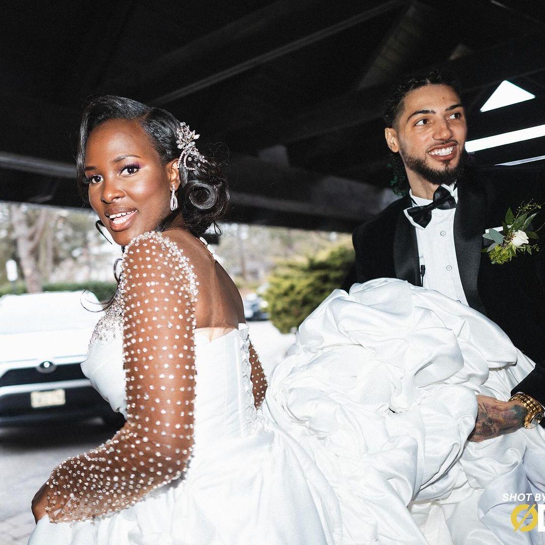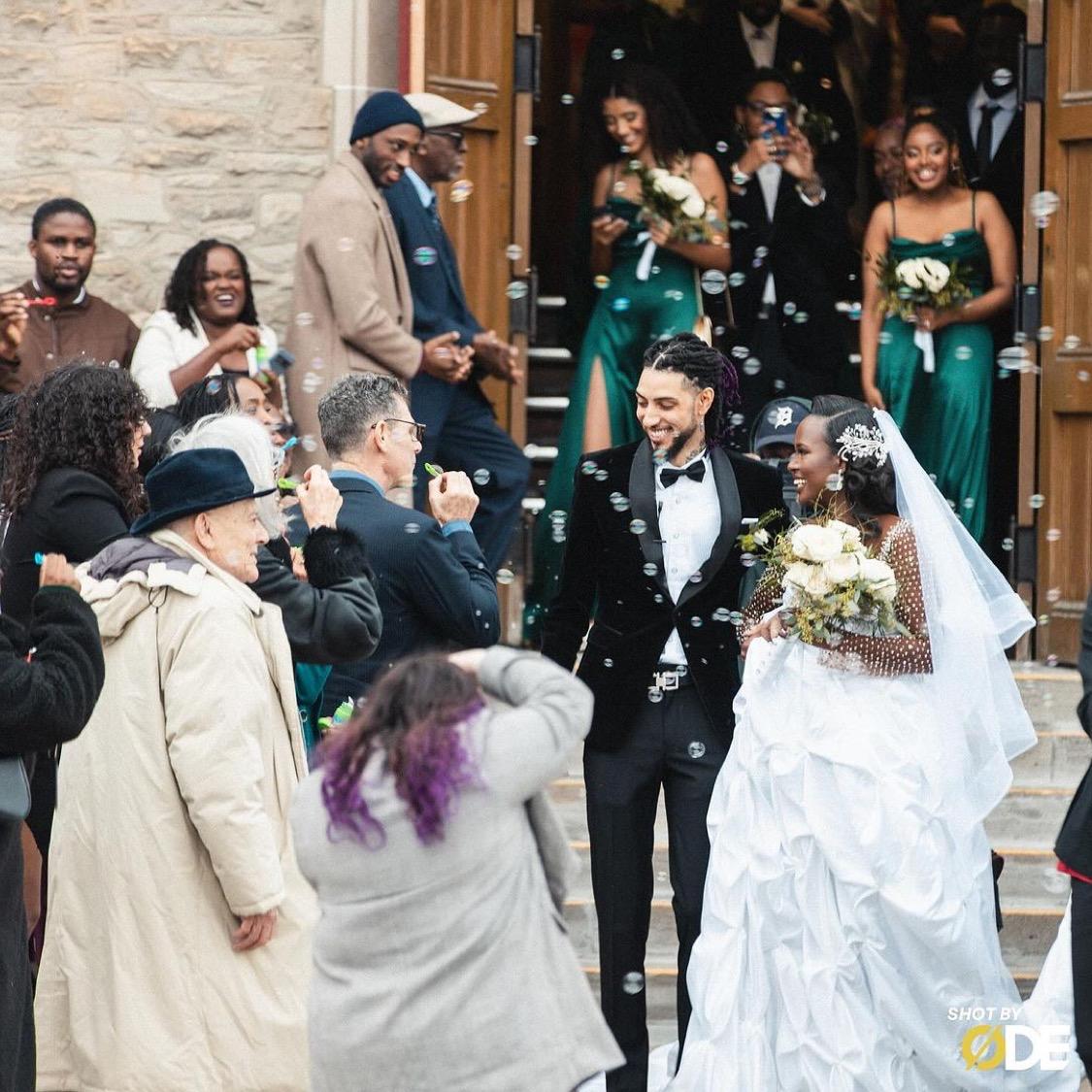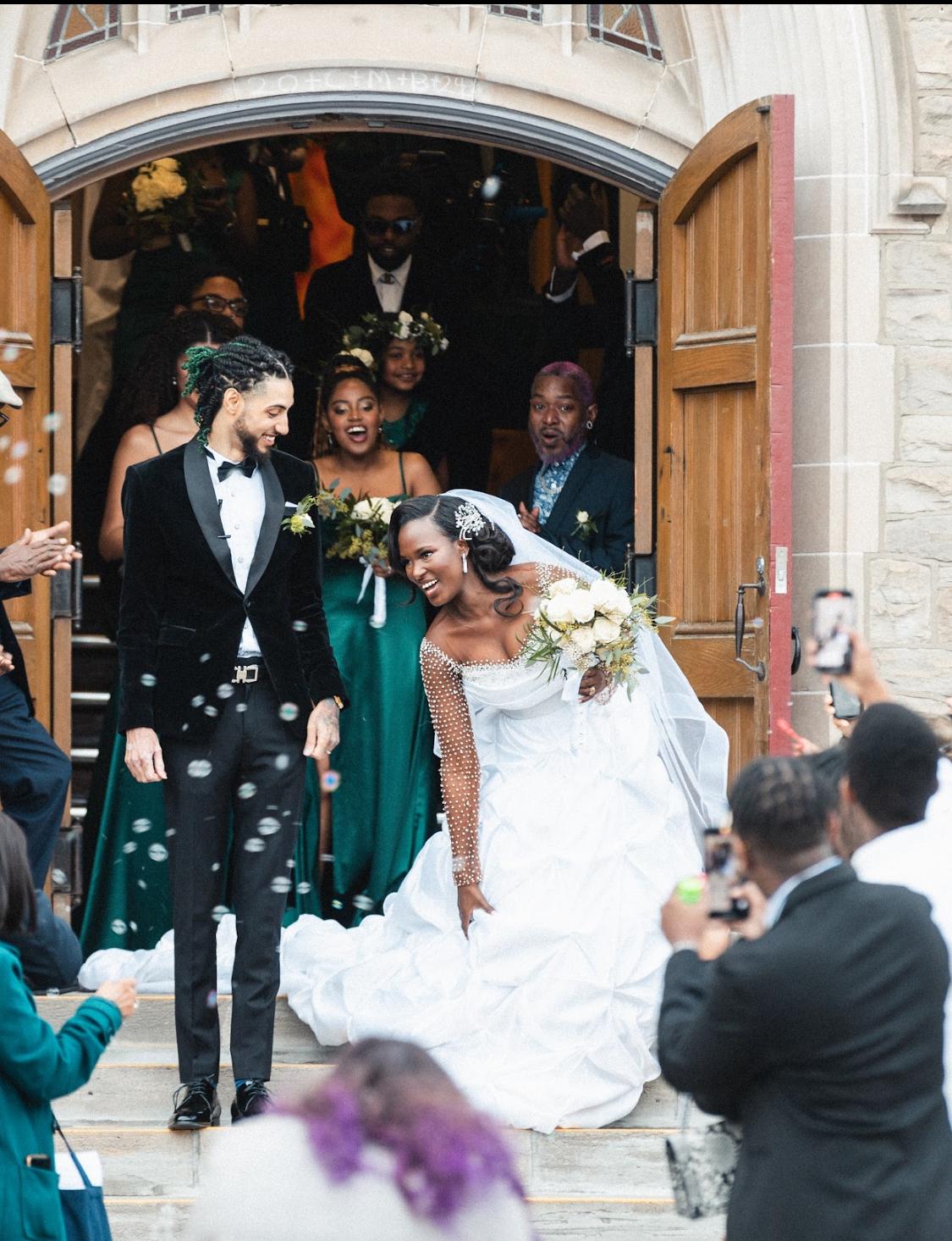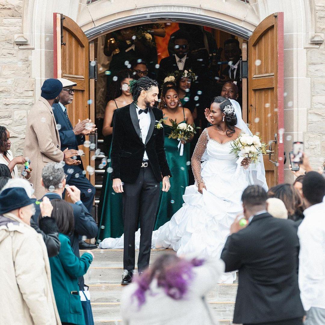 Ngarambe ari kumwe n'umukunzi we basohoka mu rusengero basezeraniyemo imbere y'Imana