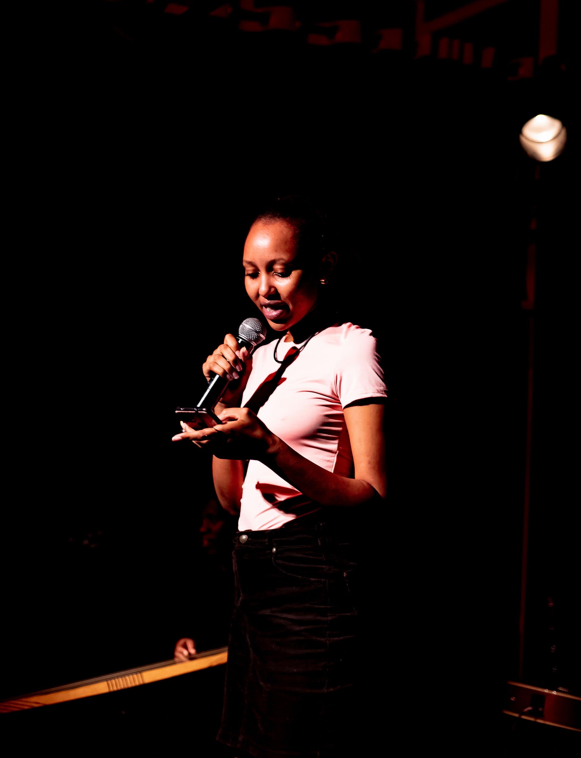 mukobwa ari gukora ku gisigo yakoranye na Divin Derick kizasohoka mu gihe cyo Kwibuka ku nshuro ya 31 Jenoside yakorewe Abatutsi mu 1994, ndetse ari no