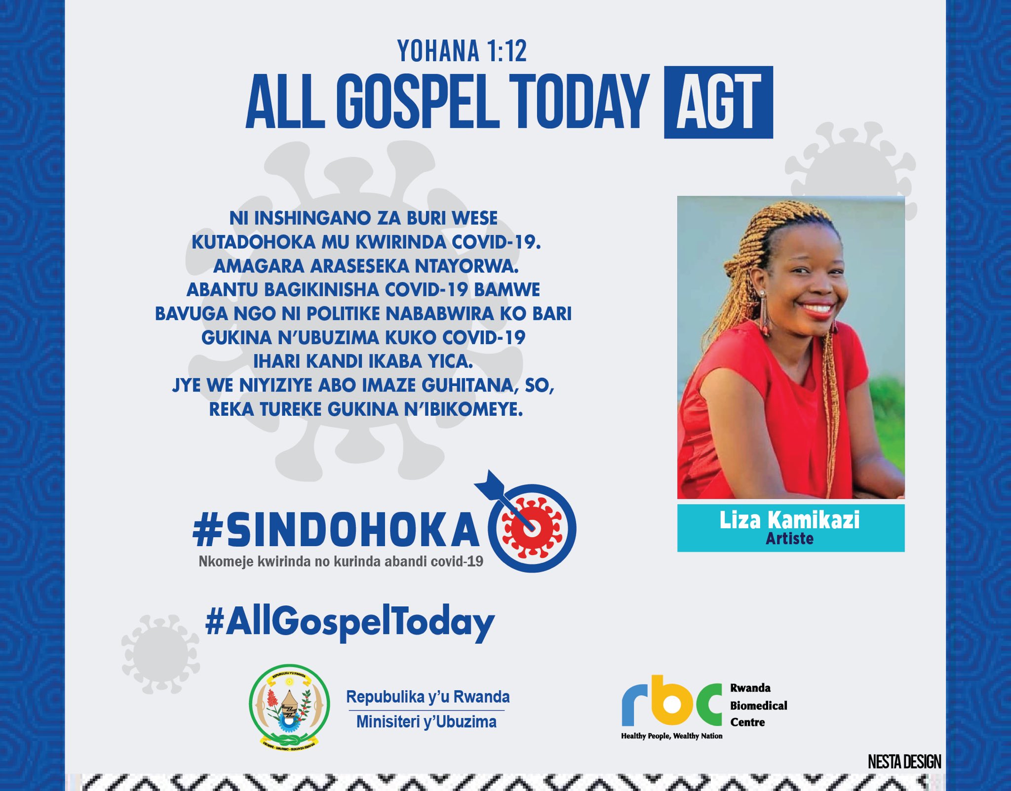 Mu butumwa bugaragara ku mbuga nkoranyambaga za All Gospel Today bukubiyemo: #Sindohoka, Kambare neza ku bw’abandi, Karaba intoki kenshi kandi neza, Sigamo intera ya metero hagati yawe n’undi, irinde ingendo zitari ngombwa, Imana ifasha uwifashije, kingura amadirishya n’inzugi by’aho utuye cyangwa aho ukorera, Twihangane tuzatsinda, Covid-19 irica, Covid-19 ntitoranya, Covid-19 nawe yakugeraho, Jye nawe dufatanyije tuzatsinda.
