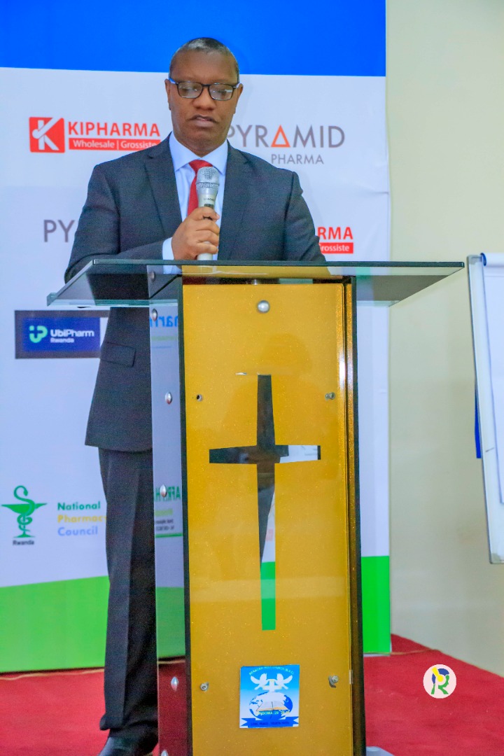 Dr Patrick Ndimubanzi, Umunyamabanga Nshingwabikorwa w’ububyamabanga bushinzwe Imyigishirize y’Abakozi bo mu Rwego rw’Ubuzima (HRHS) wari umushyitsi mukuru, yibukije ko Leta y’ u Rwanda yahaye urugaga rw’abahanga mu by’imiti inshingano zo kurinda amategeko, icyubahiro n’ishema by’umwuga w’abahanga mu by’imiti, no kurengera ubuzima rusange bw’abaturage.