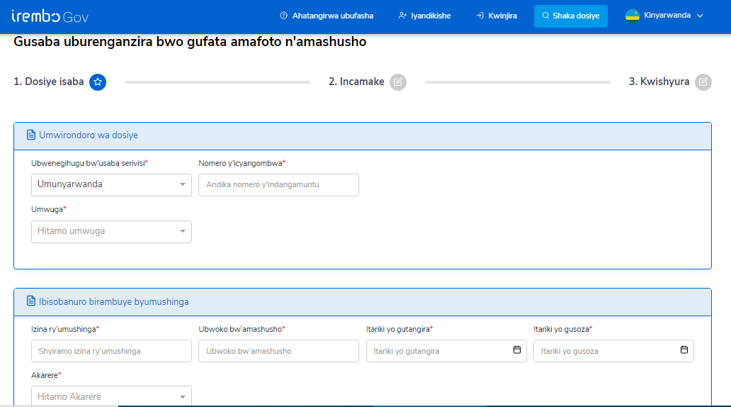 Umwirondoro wa Dosiye y'usaba uburenganzira bwo gufata amashusho, ugizwe no kugaragaza ubwenegihugu bw'usaba serivisi, Nimero y'Irangamuntu ye ndetse n'umwuga akora.