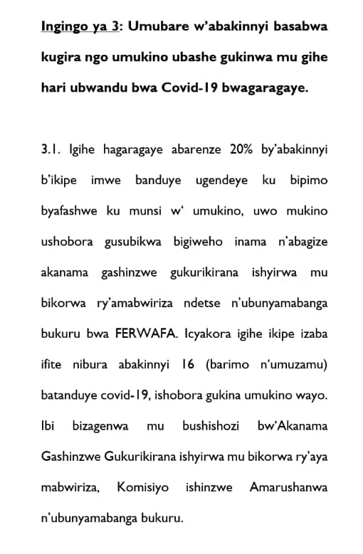 Kuri uyu wa Kabiri tariki 4 Mutarama, ni bwo ishyirahwamwe ry'umupira w'amaguru mu Rwanda FERWAFA ryagiranye inama n'abayobozi b'amakipe y'icyiciro cya mbere n'icya kabiri mu bagabo n'abagore. Ni inama yari igamije kurebera hamwe uburyo shampiyona zakomeza harushaho kurwana n'ikwirakwira ry'ubwandu bwa Covid-19.