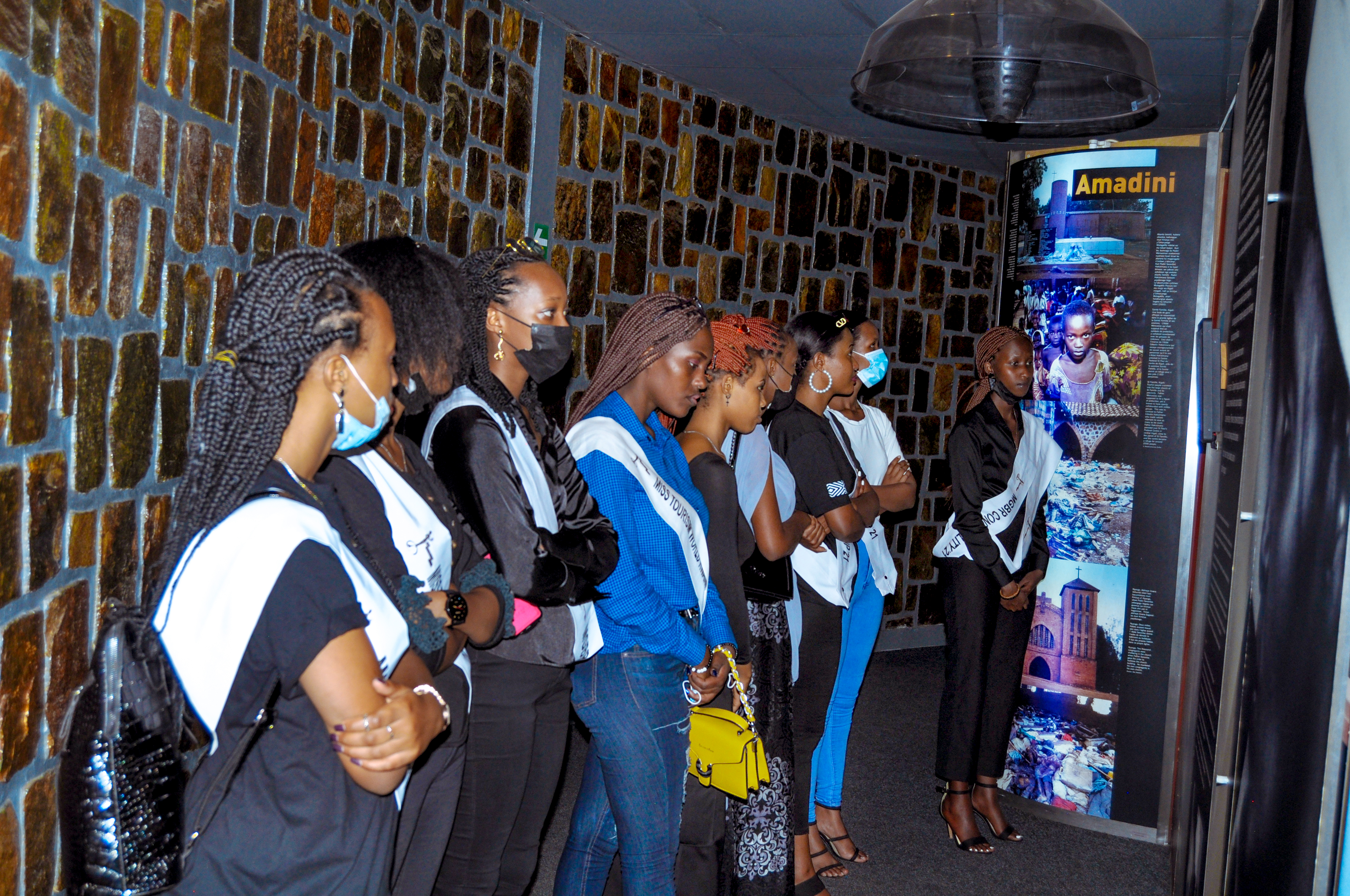 Aba bakobwa beretswe ibice bitandukanye by’urwibutso rwa Jenoside rwa Kigali, basobanurirwa amateka yagejeje kuri Jenoside